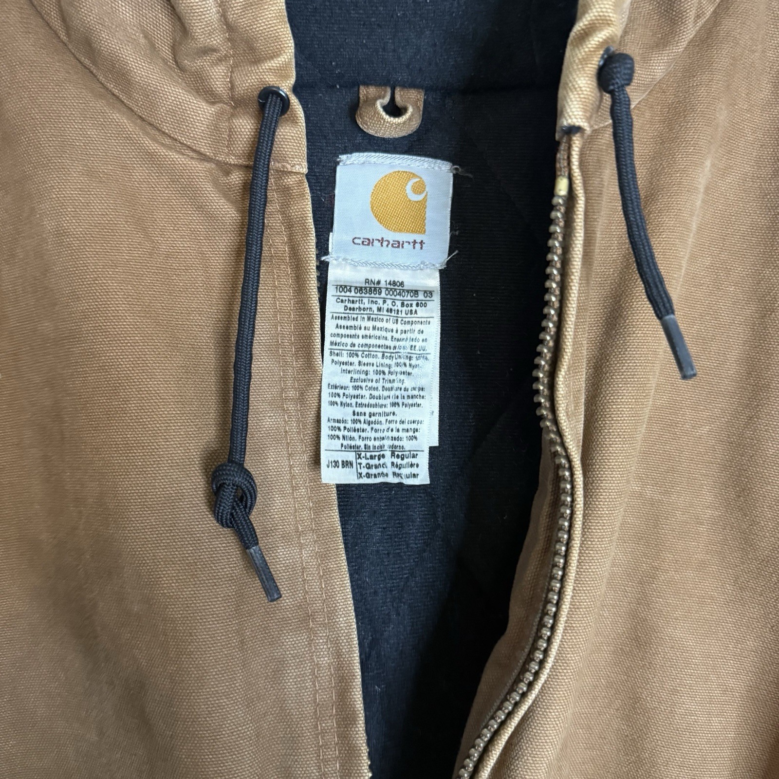 Elevate your style with this Carhartt Men's Brown J130 Quilt Flannel Lined Duck Canvas Active Jacket in size XL. Crafted from high-quality flannel fabric, this bomber jacket offers both warmth and comfort. The jacket features a quilted design and is lined for added insulation, making it perfect for colder weather. The jacket comes in a stylish brown color and is ideal for men who want a fashionable yet functional outerwear. With its Carhartt brand and J130 model, this jacket is a must-have for anyone who values quality and style. It's perfect for outdoor activities or casual wear. Get your hands on this jacket today and stay warm and stylish all winter long! SIZE XL LENGTH 28 CHEST 28