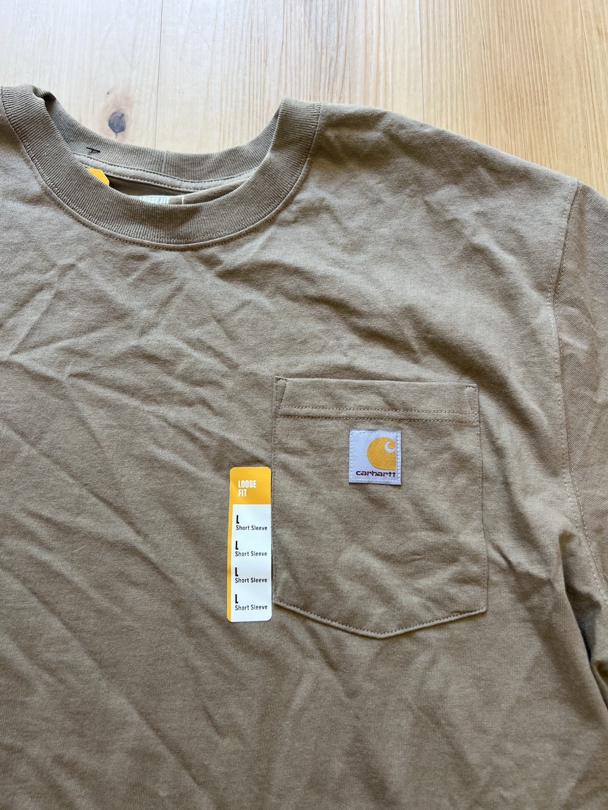 The Carhartt Men's Loose Fit Heavyweight Short-Sleeve Pocket T-Shirt in Beige is a high-quality and durable shirt designed for men in size L. This shirt features a regular fit and short sleeves, making it perfect for casual or everyday wear. The heavyweight fabric ensures added warmth and comfort, while the pocket detail adds functionality to the design. With its classic color and reliable brand, this t-shirt is a versatile and essential addition to any man's wardrobe.