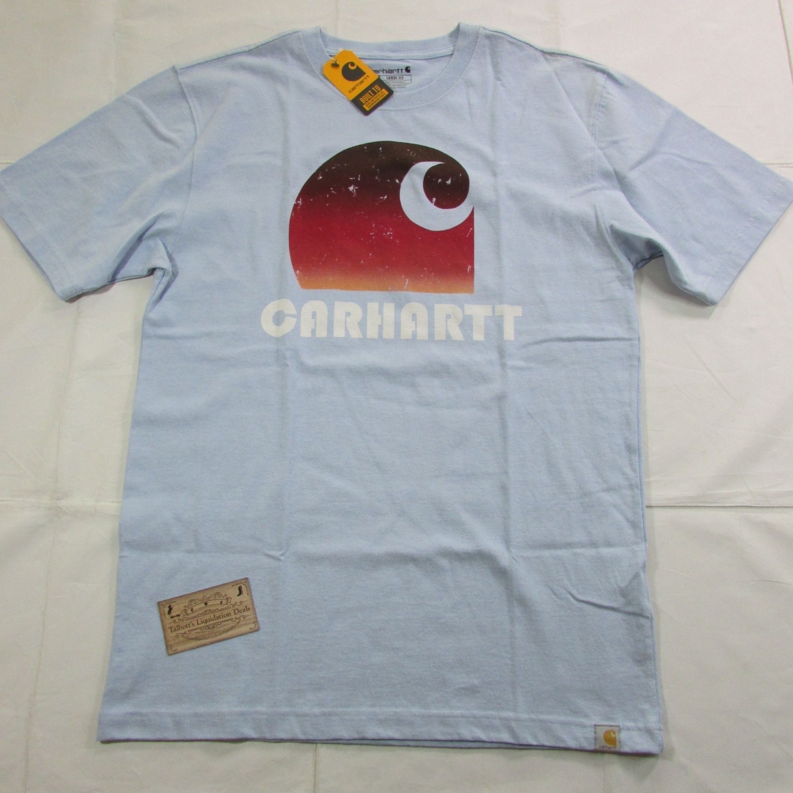 Brand New With Tags Men's Size: Brand: Carhartt Color: Fog Blue Style # TK6151 Loose Fit Heavyweight Short Sleeve C Graphic Tee Shirt Top Approx Measurements: (Pit to Pit x Length) Small - 21" x 29.5" Large - 25" x 31.5" Large Tall - 25" x 33" XL - 26.5" x 32.5" 2XL - 29" x 34"