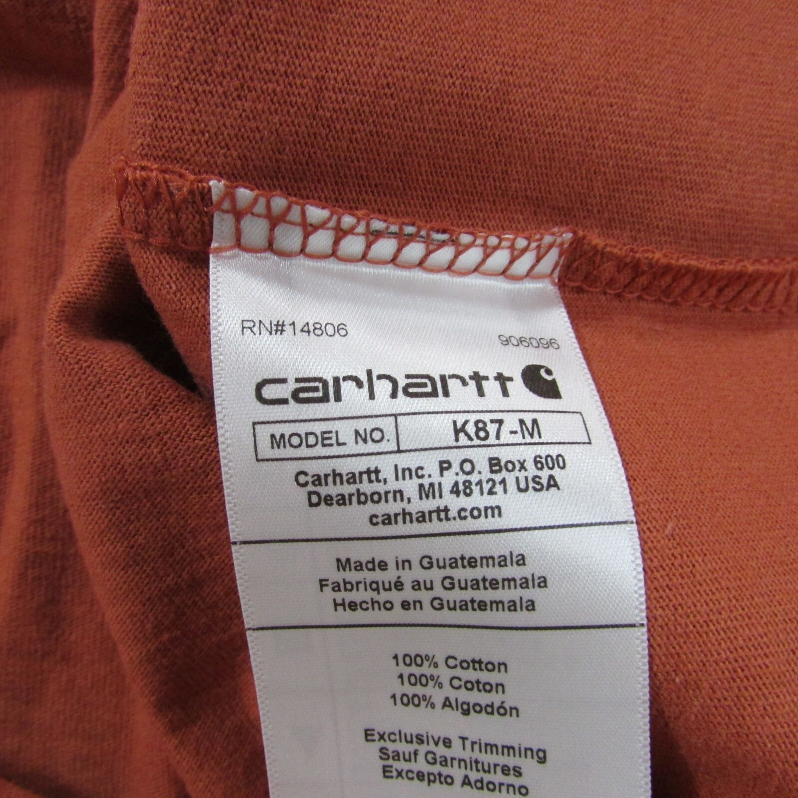 Brand new with tags Men's Size Brand: Carhartt Color: Terracotta Style # K87 Loose Fit Heavyweight Short Sleeve Pocket Tee Shirt Top Approx Measurements: (Chest x Length) XS - 19" x 29" S - 20" x 30" LT - 25" x 33" 4XL - 32" x 35.5" 4XLT - 32" x 36.5"