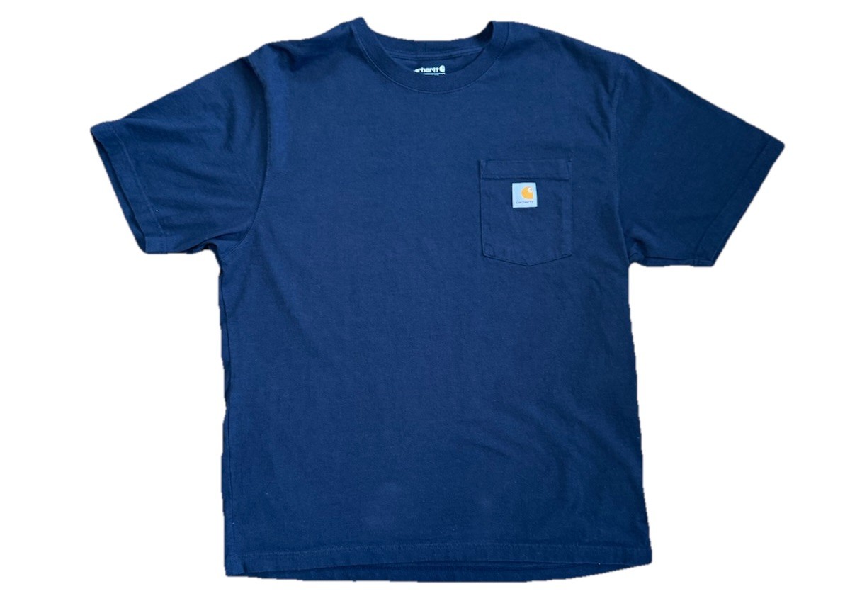 🛠️ Classic Carhartt Men’s Short Sleeve Pocket Tee in navy blue , perfect for casual wear or jobsite durability. GUC (Good Used Condition) with no major flaws—soft, broken-in feel. 👕 Details: Size: Large Pit to Pit: 23" Length: 29–30" Carhartt logo tag on pocket Short sleeve Crew neck Navy Blue 🔥 Ideal for everyday wear , workwear layering , or Carhartt fans looking for that classic fit. 🔑 Keywords: Carhartt Pocket Tee Workwear T-Shirt Men’s Carhartt Large Navy Blue Carhartt Shirt Carhartt Essentials Durable Men’s Shirt Outdoor Jobsite Clothing Classic Carhartt Logo Tee