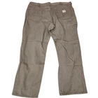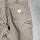 Classic Carhartt work pants in khaki/tan color. Traditional 5-pocket design with utility-style back pockets. Relaxed straight leg fit. Cotton construction. Good pre-owned condition with normal wear. Ideal for work or casual wear. Style: Carpenter Color: Brown Department: Men Inseam: 30 in Type: Pants Fit: Relaxed Material: Cotton Features: Utility Pockets, Relaxed Fit, Straight Leg, Cotton Construction, Traditional 5-Pocket Design Fabric Type: Canvas Front Type: Flat Front Leg Style: Straight Accents: Button, Logo, Zipper Keywords: carhartt, work pants, utility pants, khaki pants, mens pants, straight leg, relaxed fit, cotton pants, casual pants, workwear all items have been cleaned and disinfected we stand behind all we sell so please contact us if you have an issue with any order