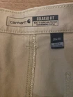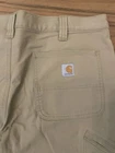 Crafted for durability and comfort, these CARHARTT Men's Utility Work Pants are a reliable addition to your workwear collection. The pants feature a rugged tan color that easily transitions from the job site to casual outings. With a size 38x30, the fit is designed to be relaxed, allowing for ease of movement throughout the day. The pants are made from high-quality cotton material that's easy to care for, ensuring that they remain looking and feeling great even after multiple washes. They come equipped with a variety of pockets, including cargo and slash pockets, providing ample storage for personal items and tools. The combination of a button and zip closure ensures a secure fit, while the straight leg style offers a classic look.