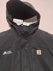 Carhartt Jacket Mens XL Black Hooded Waterproof Outdoor Workwear 101442-001 Condition: Good, light wear with minor signs of use, no major visible flaws Shell: 60% cotton, 40% polyester; Lining: 100% polyester; Sleeve lining: 100% nylon Full zip front with snap button storm flap Adjustable hood and cuffs Two front zip hand pockets and zip chest pocket Embroidered Martin Marietta logo left chest, Carhartt logo patch right chest Mesh-lined for breathability Tag size: XL Regular Approximate measurements: Chest (pit to pit) 25", Shoulder to hem 28", Shoulder to shoulder 24" Made in Cambodia Style code: 101442-001 Perfect for work, construction, or outdoor activities