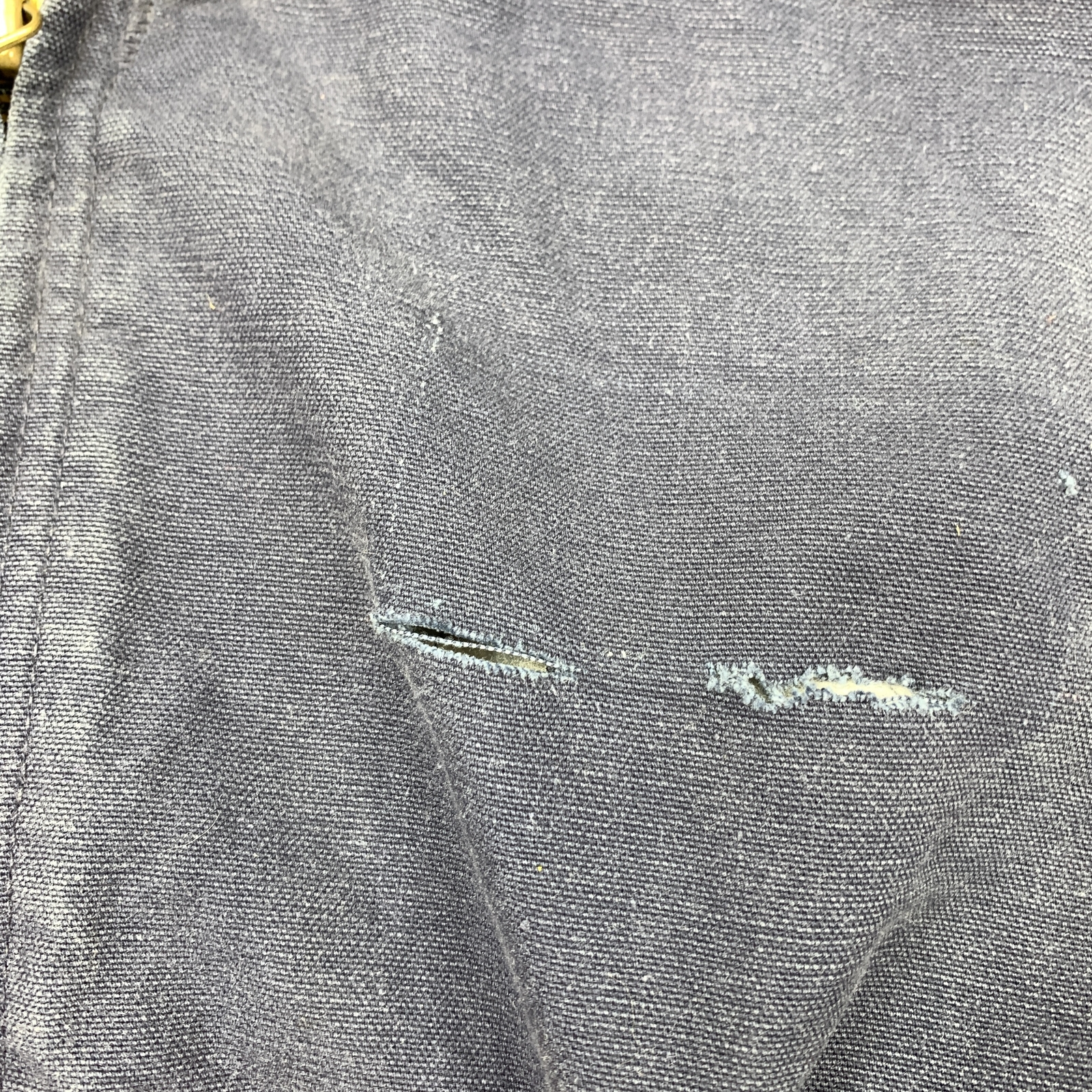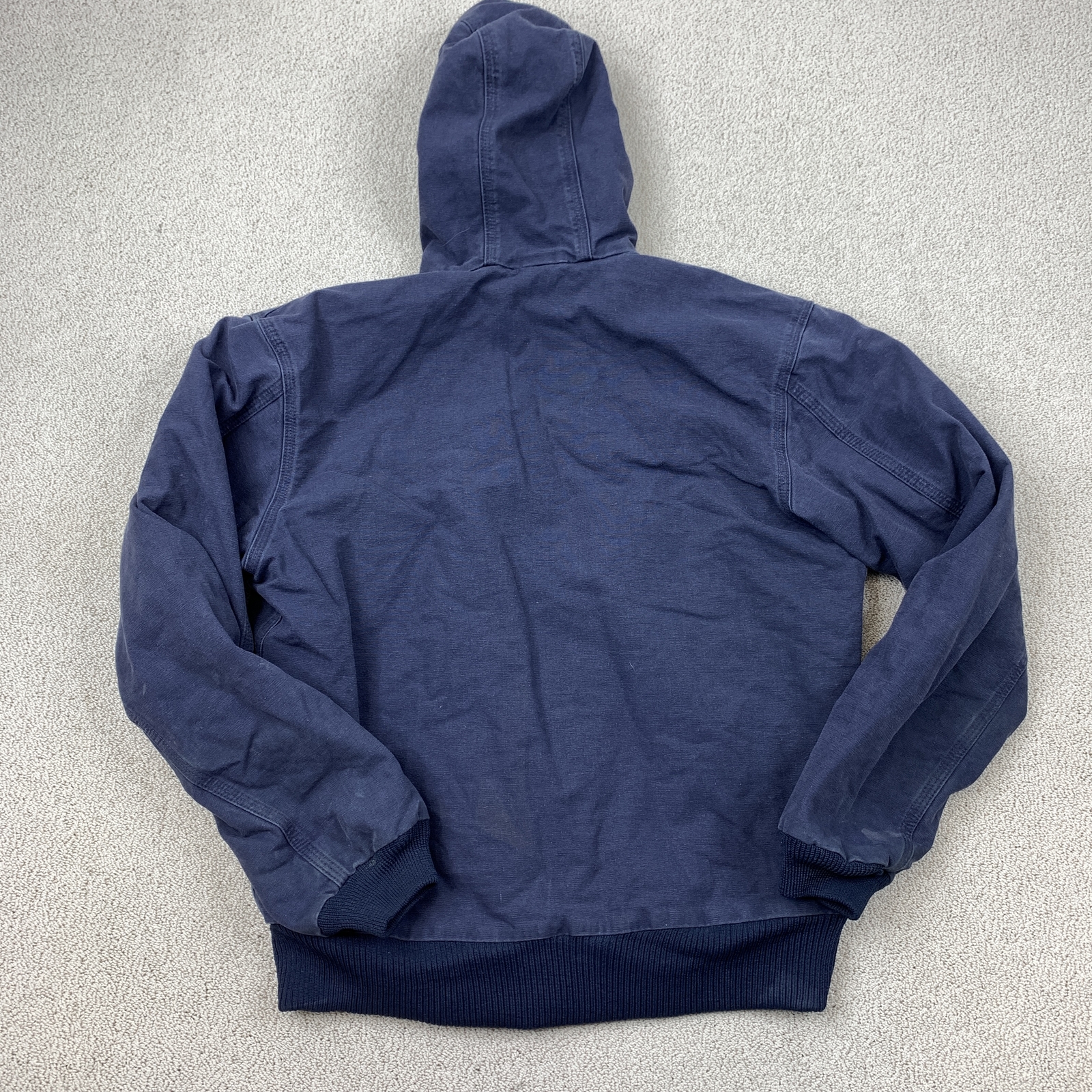 This Carhartt hooded jacket is a solid pre-owned find—still tough and ready for work! The blue heavyweight fabric shows some wear with a spot on the sleeve and a small hole, but it’s built to last. Measurements are in the photos for a perfect fit, and combined shipping saves you money if you grab more gear. Ships fast—great deal for a durable classic!