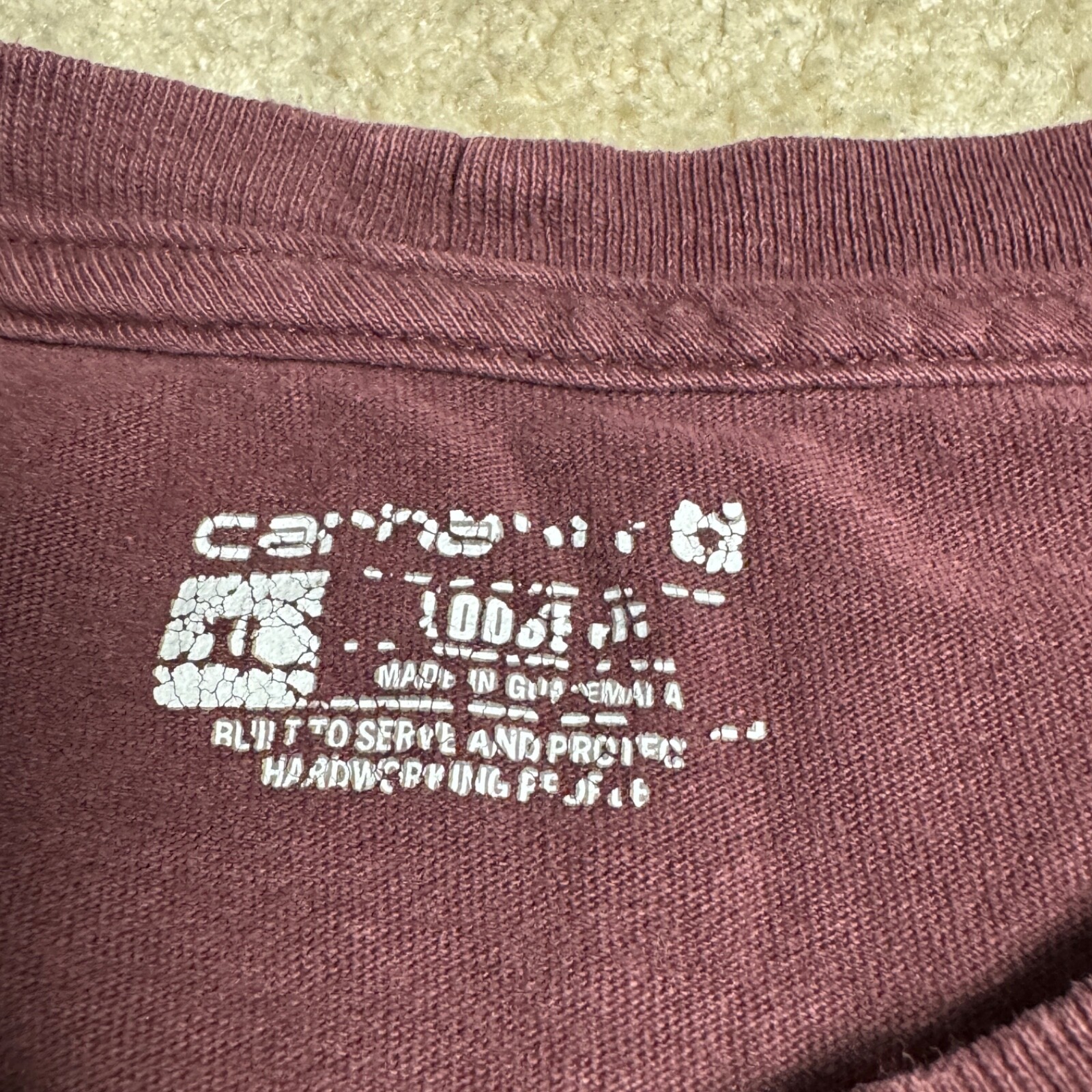 Description: Carhartt Men Long Sleeve Pocket Tee Workwear Faded Maroon Cotton XL HOLE Condition/Details: Noticeable hole on sleeve, visible wear throughout. Still functional for work or casual use. Please see pictures for condition and measurements. I recommend measuring a similar item you own to make sure this item fits. If you want additional measurements, please let me know. SIZE: XL MEASUREMENTS: Chest - 25", Length - 29" FAQ When will it ship? Within 1 business day of when I get your payment, not including weekends or federal holidays. Can I return it? Yes, I accept returns within 30 days of the original purchase date for a full refund. It has to be in the same condition as received in. However buyers pay for shipping for returns. Are any of your product in a smoke / pet environment? All items are stored in a smoke and pet free environment. What if I have a question or a problem? If you have any questions, please give me a message on eBay!