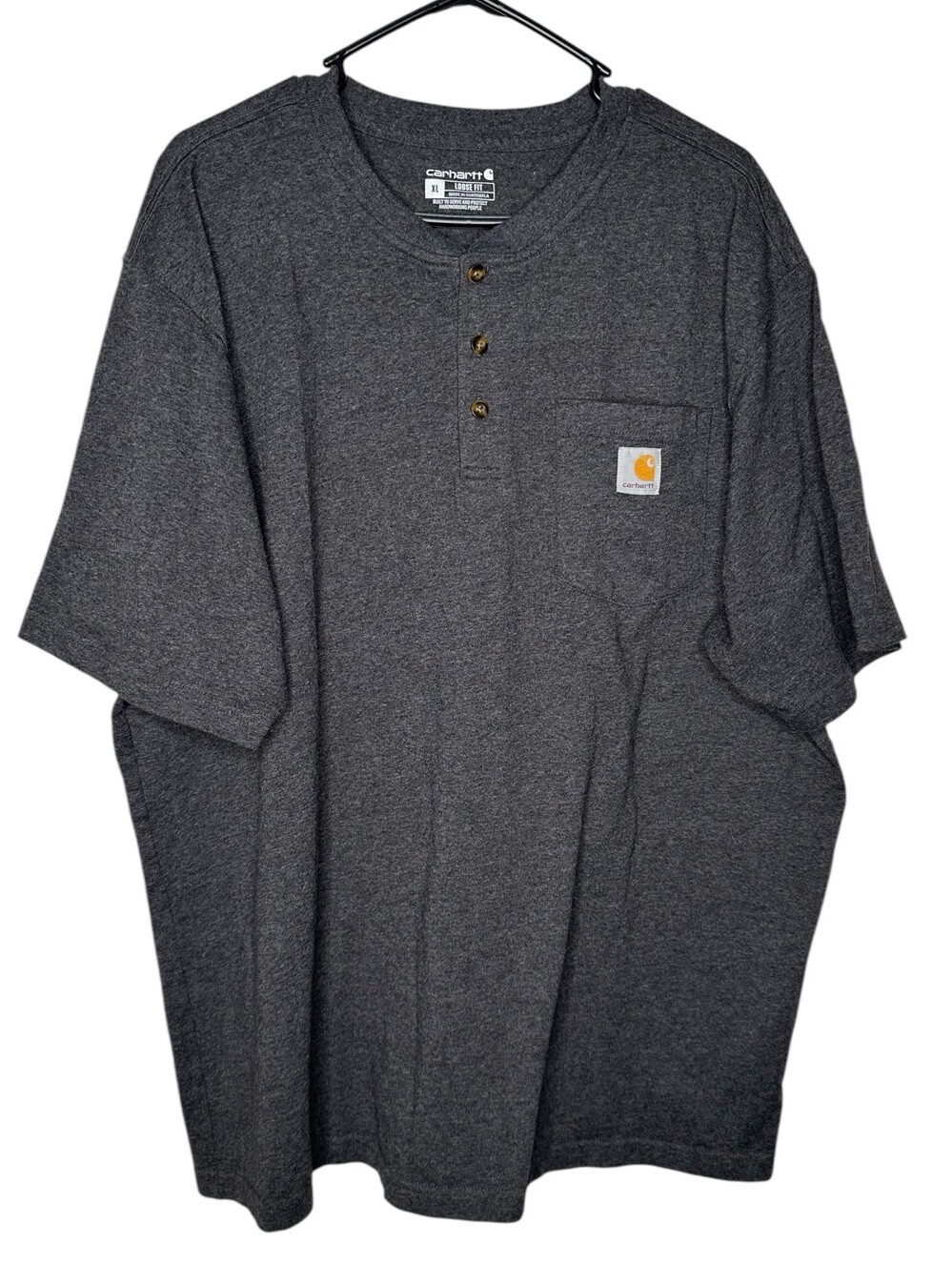 Carhartt Men’s Henley T Shirt Loose Fit Grey Pocket Tee Short Sleeve Excellent condition Size XL Pit to pit- 26” Top to bottom- 31”