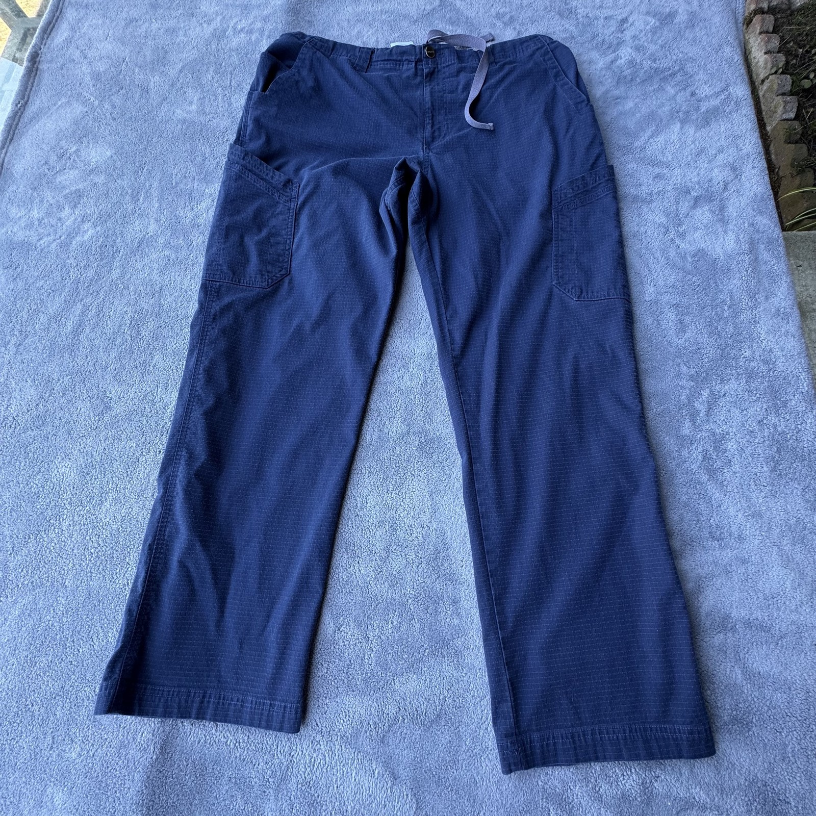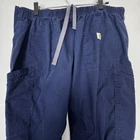 Carhartt Pants Mens Extra Large Navy Blue Ripstop Utility Cargo Workwear Drawstring Condition: Gently worn, no visible flaws or stains, fabric and seams intact throughout Material: 100% Cotton ripstop for durability and lightweight comfort Color: Navy Blue Style features: Elastic waistband with internal drawstring and button closure for secure fit Large dual cargo pockets at sides, standard hand pockets, and back pockets provide ample storage Sturdy Carhartt branded button, Carhartt patch logo at back pocket Tag size: Extra Large (Mens) Approximate flat measurements: Waist measures ~17" across (34" waist, with stretch for comfort); Rise is ~12.5" Model: 0121-7006886 Made in Nicaragua Designed for workwear, outdoor and casual use—durable ripstop fabric resists tears and abrasion Please read item descriptions carefully and view all photos for flaws and measurements. Items typically ship same/ next day. Returns accepted within 60 days of purchase. To receive a full refund the returned item must arrive back in the same condition that was sent. New items must be returned in the new condition, in the sealed package and tags still attached.