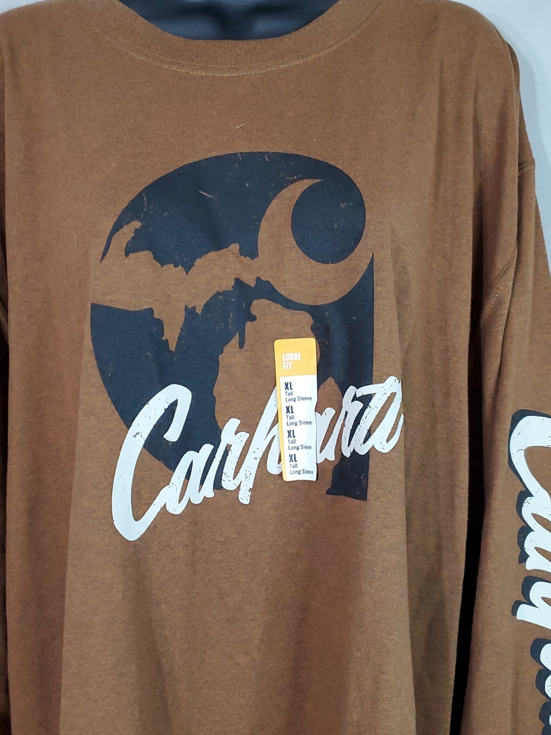 Carhartt Men's Loose Fit Heavyweight Long Script Sleeve Graphic T-Shirt Carbon T