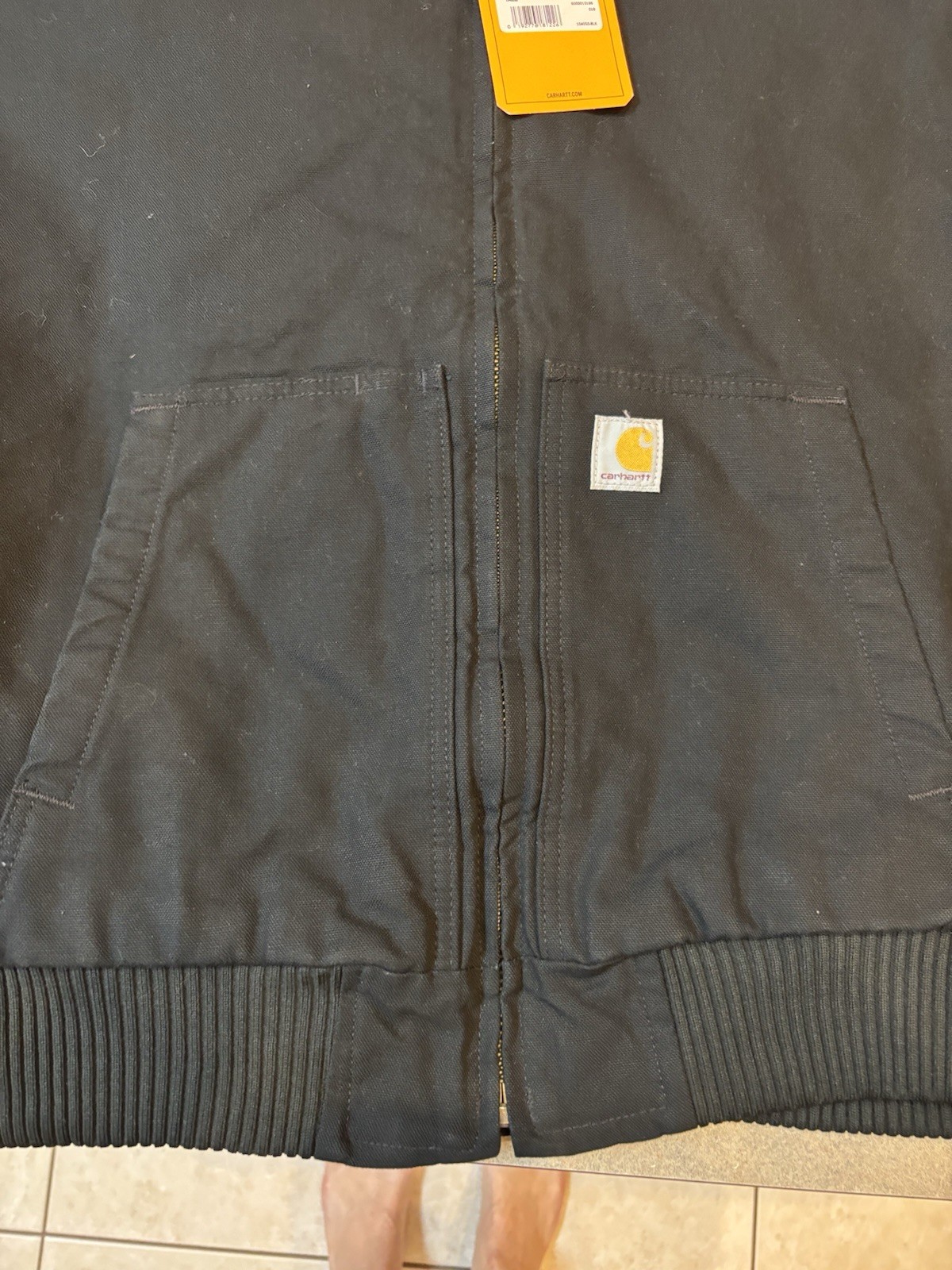 The Carhartt Jacket is a solid black XL Tall Men's jacket with a zip closure and polyester lining. It is designed for casual occasions and features a heavy construction suitable for winter and fall seasons. The jacket has a zipper accent and is branded by Carhartt, known for durable and quality outerwear. Perfect for men looking for a stylish and functional overcoat with a timeless USA theme.