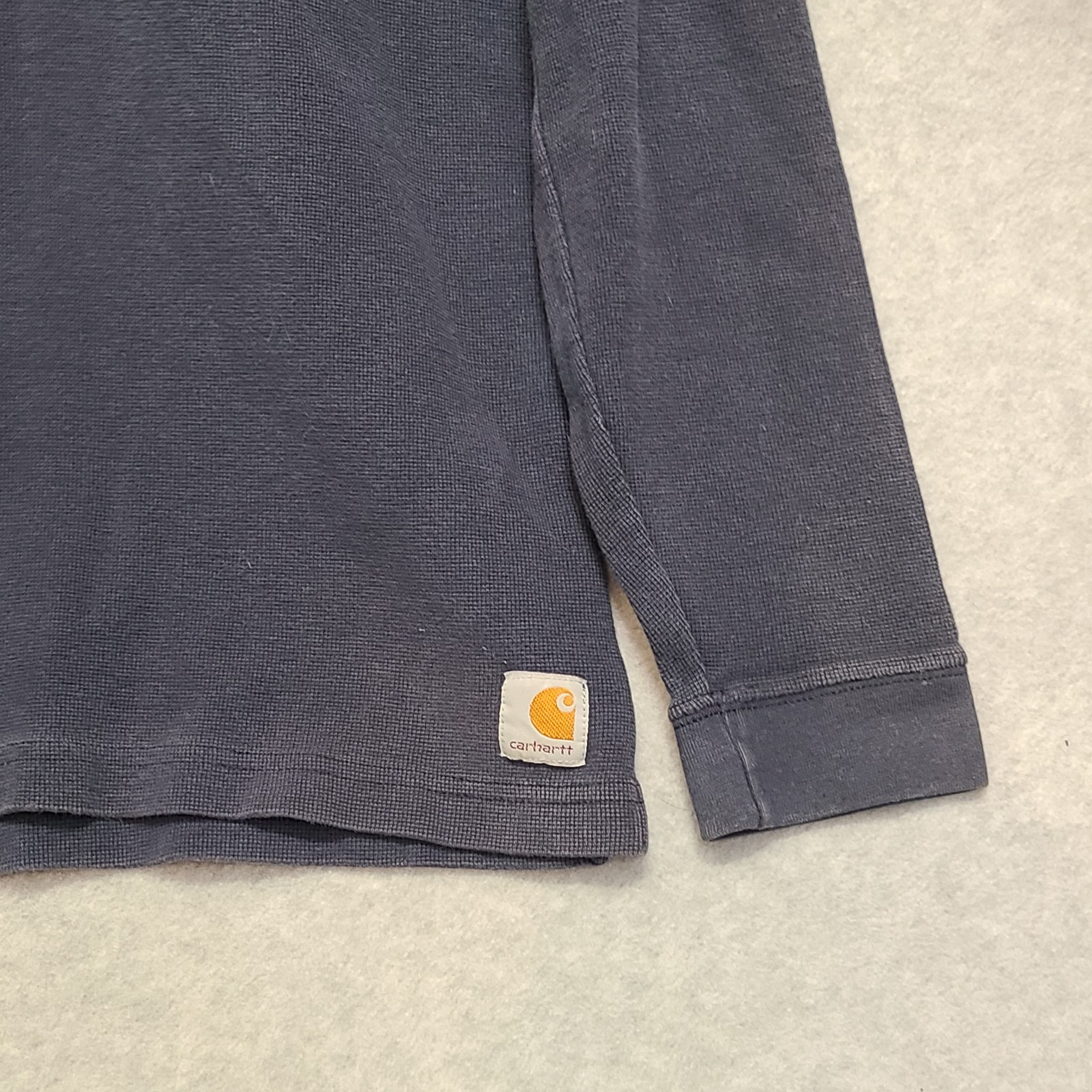 This Carhartt henley is a solid pick—comfortable waffle knit, great fit, and built to last. The blue color still looks good despite some light fading, which just adds character. Perfect for work or casual wear. Photos show the condition accurately, and the seller is responsive. Great value for a rugged, well-loved shirt!