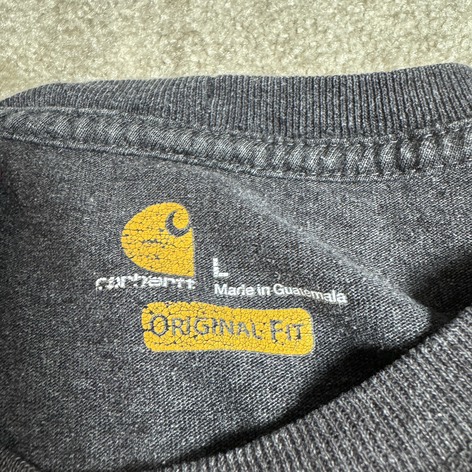 Carhartt Mens Crew Neck T Shirt Original Fit Large Gray BLEACH SPOT Condition/Details: Bleached spots on the front side. Please read description for condition, details, and measurements. I recommend measuring a similar item you own to make sure this item fits. If you want additional measurements, please let me know. SIZE: Large MEASUREMENTS: Chest - 23", Length - 28" FAQ When will it ship? Within 1 business day of when I get your payment, not including weekends or federal holidays. Can I return it? Yes, I accept returns within 30 days of the original purchase date for a full refund. It has to be in the same condition as received in. However buyers pay for shipping for returns. Are any of your product in a smoke / pet environment? All items are stored in a smoke and pet free environment. What if I have a question or a problem? If you have any questions, please give me a message on eBay!