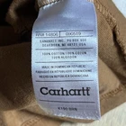 The Carhartt Original Fit Long Sleeve Curry Butterscotch Crew Neck T-Shirt in size Large features a solid pattern with a crew neck and long sleeves. The shirt is accented with the Carhartt logo and has a sleeve spellout feature, making it a classic and outdoor-themed choice for men's casual wear. Made by the reputable brand Carhartt, this shirt is designed for comfort and style, perfect for everyday wear or outdoor activities. Discoloration on the spell out.