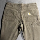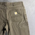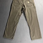 *Please review all photos closely before purchasing due to pants having some shrinkage in waist and inseam from use and washing and also left front lower pant leg having one color fade spot to prevent return.* Look professional and stylish with these Carhartt pants for men. The pants come in a beautiful brown color and are made of rugged and durable canvas material. They are perfect for workwear and casual occasions, with a mid-rise and straight leg style that offers a comfortable and relaxed fit. The pants feature a flat front, cargo pockets, and a 5-pocket design, making them both functional and fashionable. They have belt loops and are machine washable for easy care. These pants are perfect for any season, whether it's winter, summer, fall, or spring. Get your hands on these pants today and experience the quality and comfort of Carhartt. Work Utility Construction Plumber Concrete Finisher Machinist Industrial Heavy Detroit Duck Canvas Durable Original Authentic Factory Pipeline Trucker Heavy Equipment Operator Mechanic Off Shore Welder
