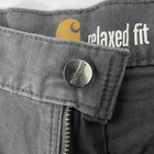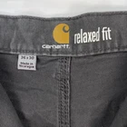 Carhartt Pants Mens 36x30 Gray Relaxed Fit Condition: Good, light wear with minor signs of use, no major visible flaws Style: Relaxed Fit work utility pants with multiple pockets and tool slot Features: Durable construction, reinforced pockets, utility/tool pocket on leg, Carhartt patch on back pocket, button closure and zip fly Material: 98% cotton, 2% spandex for comfort and stretch Color: Gray Carhartt branding on back pocket, interior waistband, and metal button Tag size: 36x30 Made in Nicaragua Ideal for work, outdoor projects, or rugged casual use