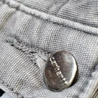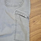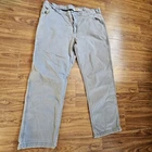 These Carhartt pants are gray in color, size 42x32, with a relaxed fit and lined interior. They feature a cargo style, zip and button closure, made of a Spandex, Cotton, and Cotton Blend material. The fabric is Canvas, and the brand is Carhartt. The pants are designed for men and have a waist size of 42 inches.