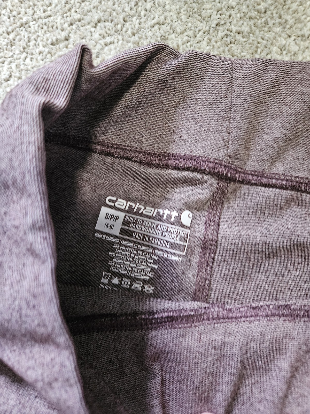 The Carhartt Women's Force Fitted Midweight Utility Legging in size Small is a versatile and stylish piece of activewear designed for women. Made from a blend of polyester these leggings offer a solid color in a flattering skinny leg style. The pull-on closure and machine washable fabric make them easy to wear and care for, while the pockets add functionality for on-the-go convenience. Perfect for winter, fall, and spring seasons, these leggings are ideal for walking and everyday activities. With the trusted brand of Carhartt, these leggings provide both performance and style for the modern woman.