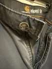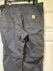 Carhartt Jeans Good used condition Need space in my closet. No stains or unusual wear. Zip off legs to turn into shorts. Still lots of life in these. Measurements say 38x32 on tag. Tape measure across the front of pants hip to hip is 18.5”. Actual inseam is 30.5”. 100% positive feedback. I ship fast.