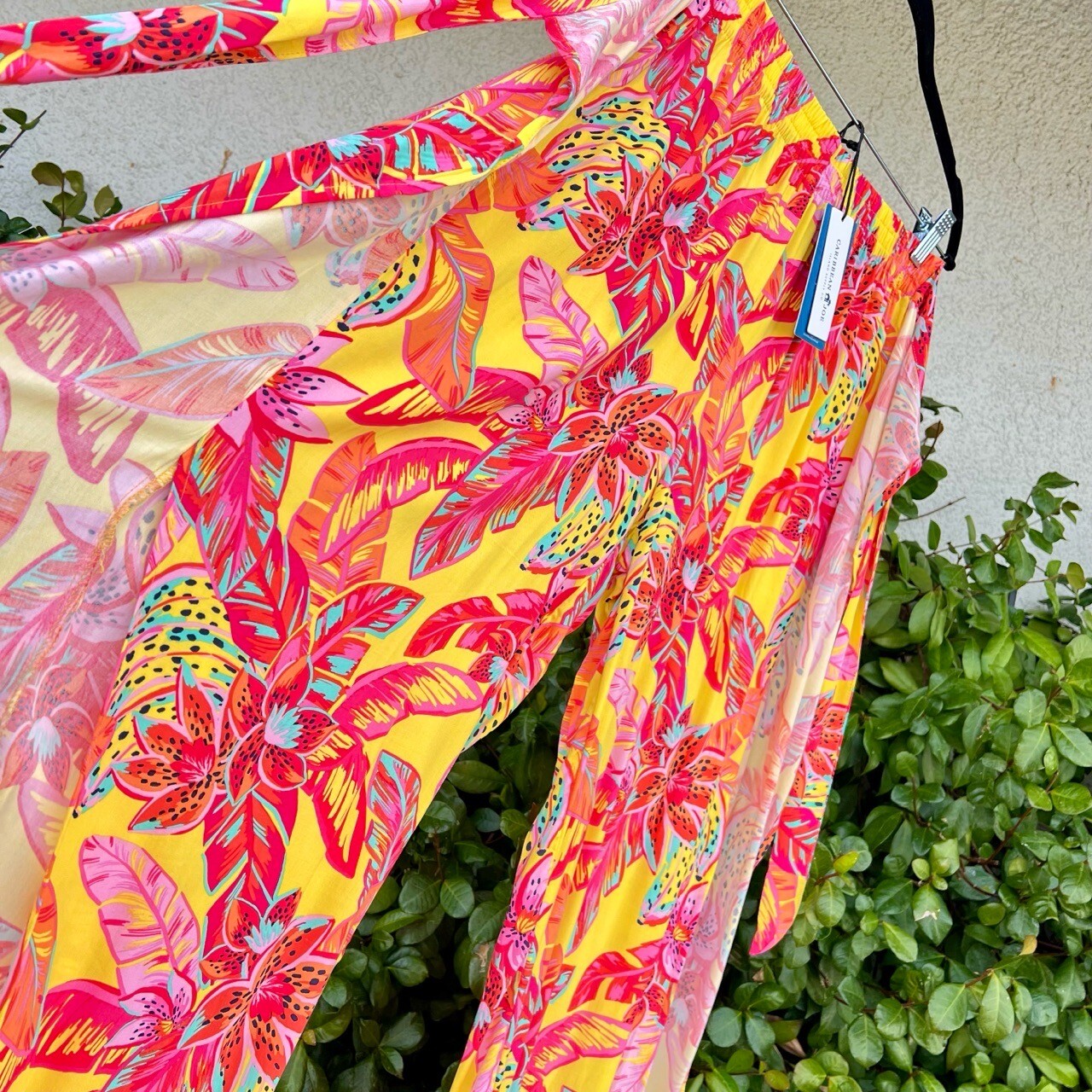 Caribbean Joe Floral Wide Leg Palazzo Pants Women’s Size Medium Condition: New with Tags, no flaws. MSRP $50 Gorgeous wide leg pants with wrap around belt and side slits. High-waisted; elastic waistband. Tropical floral print in shades of yellow, fuschia, light pink, orange, blue and black. Can be worn casually to a festival or date night, but also works as an excellent beach cover-up. 100% Rayon Approximate measurements: 30” Waist (35” with stretch) 43” Length, 13” Front Rise, 32” Inseam All orders ship the same or next day! Tags: Wide-leg, High-rise, Vacation, Pool, Travel, Bright, Concert, Cruise, Spring, Summer, Party, Farm Rio, Boho