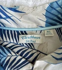 Elevate your style with this Caribbean Shirt for Men in XLT size. The shirt features a cream and blue silk blend fabric with a Hawaiian print, perfect for any occasion from travel to parties or casual outings. It has a collared neckline with a point collar style and short sleeves, making it a great choice for summer, fall, or spring. This button-up shirt has a regular fit and is machine washable for easy care. It also features pockets and a unique floral pattern, adding to its style. The Caribbean Shirt is a must-have for any fashion-conscious man who wants to stand out from the crowd. See all photos for preowned condition and sizing.