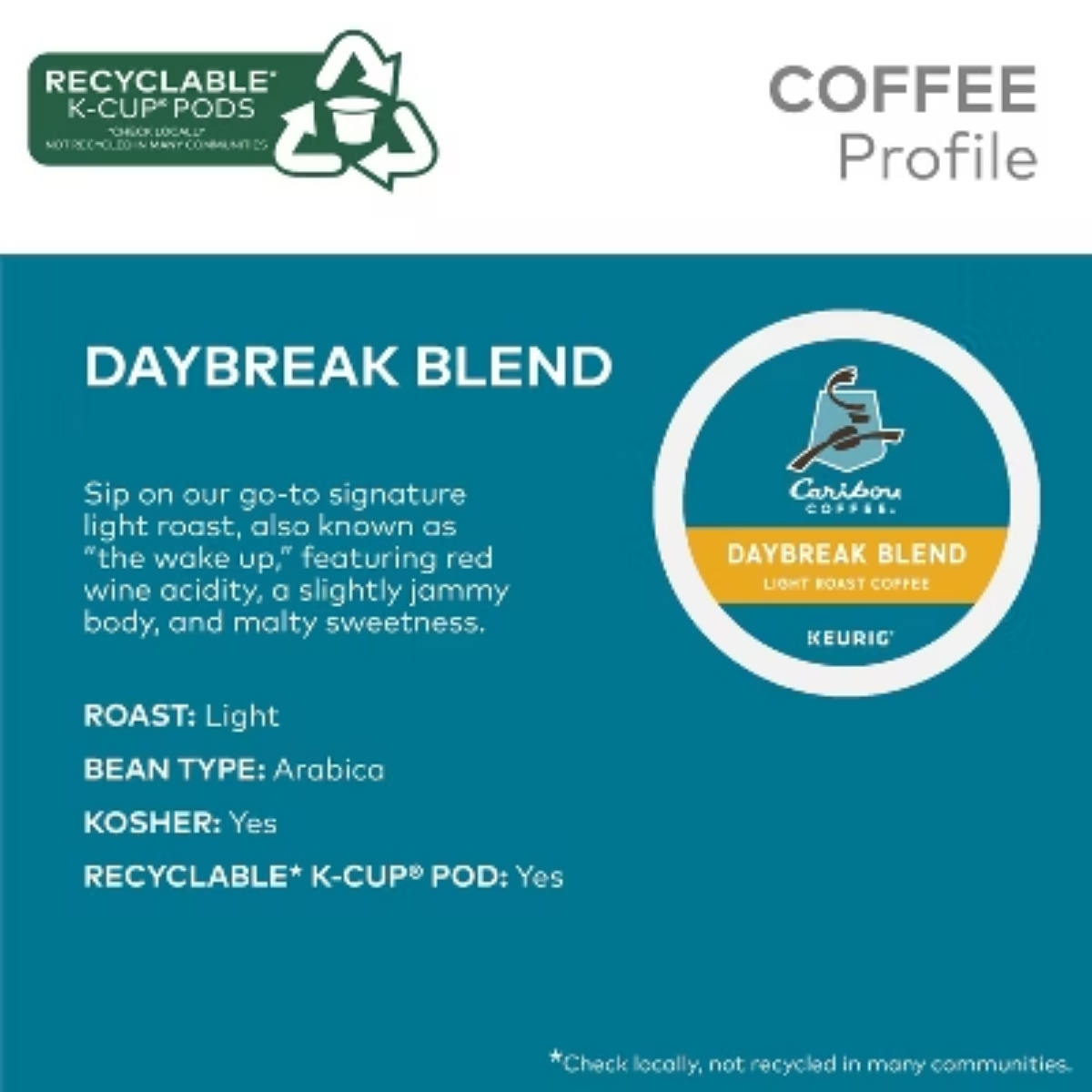 Description There’s something deliciously distinctive for every Caribou Coffee lover in this 40-count Keurig K-Cup pod variety pack featuring some of our most popular blends. This well-rounded and thoughtfully curated collection of our bestselling light, medium, and dark roast coffees includes 10 K-Cup pods each of Daybreak Blend, Caribou Blend, Lakeshore Blend, and Mahogany Blend. Daybreak Blend light roast coffee brings a touch of sunshine to every sip. Central and South American beans lend caramelly and nutty flavors, accented perfectly by notes of stone fruit and floral aromatics from East African varieties. Caribou Blend is our most popular blend, a crowd-pleasing and approachable medium roast coffee. Woodsy spice notes from Indonesian beans stand out against a backdrop of caramelized sugar flavor from Central American varieties. Lakeshore Blend medium roast coffee is a delightful combination of intensity and clarity. Washed Ethiopian beans impart creaminess and vibrance, leading to an enduringly smooth and sweet vanilla finish. Mahogany Blend features snappy acidity and vanilla sweetness, textured by pipe tobacco spice notes and rich leather aromatics from Indonesian beans. This combination elicits complex flavor in every cup, for a dark roast coffee as rich and distinguished as its namesake. Brewing joy since 1992, Caribou Coffee exists for those who believe life is not only what you make of it, but how you live it. In everything we say and do, we look for ways to delight consumers with an experience that goes beyond the expected. Each Caribou Coffee K-Cup pod is filled with freshly ground, sustainably sourced coffee beans and is compatible with all Keurig single serve coffee makers. Simple. Delicious. And recyclable.* Enjoy the same great-tasting coffee you know and love, and when you’re done, just peel, empty, and recycle.*Check locally, not recycled in many communities. highlights SELECTION: This Caribou Coffee variety pack includes 10 K-Cup pods each of Daybreak Blend, Caribou Blend, Lakeshore Blend, and Mahogany Blend. ROAST: Each 40-count variety pack contains a selection of light, medium, and dark roast coffees made with specialty-grade Arabica beans. CARIBOU COFFEE: Brewing joy since 1992, Caribou Coffee exists for those who believe life is not only what you make of it, but how you live it. In everything we say and do, we look for ways to delight consumers with an experience that goes beyond the expected. COMPATIBILITY: Contains genuine Keurig K-Cup pods, engineered for guaranteed quality and compatibility with all Keurig single serve coffee makers. RECYCLABLE* K-CUP PODS: Simple. Delicious. And recyclable. Enjoy the same great-tasting coffee you know and love, and when you’re done, just peel, empty, and recycle. *Check locally, not recycled in many communities. One 40-count pack of K-Cup Pods