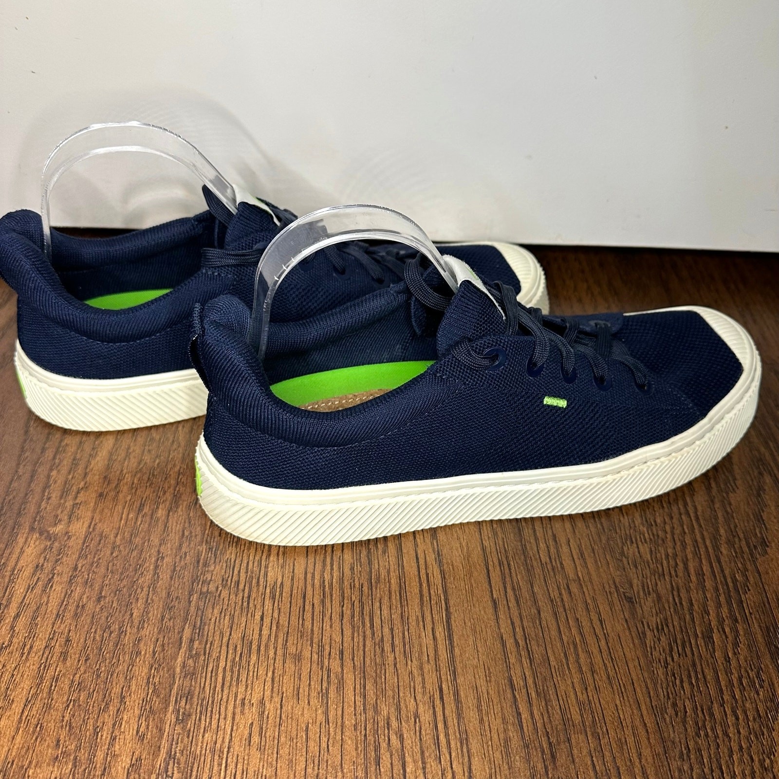 Cariuma Navy Blue Canvas Low Top Casual Sneakers Men's 9.5 or Women's 11 - Unisex shoes Outside of left shoe has a few very small holes in the sole as shown in photo. Overall shoes are in great condition.