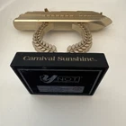 The Carnival Sunshine Ship On A Stick Trophy is a matte gold finish cruise souvenir. This collectible item features a miniature replica of the Carnival Sunshine cruise ship mounted on a stick, making it a unique and fun memento for cruise ship enthusiasts. Perfect for displaying or adding to a collection, this trophy captures the essence of the Carnival Sunshine experience in a compact and stylish design.