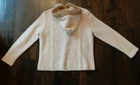The Carole Little 100% Lambs Wool Cream Cardigan Sweater with Faux Fur Trim Hood in size Large is a stylish and cozy addition to any woman's winter wardrobe. This ivory sweater features long sleeves and a knit fabric type, making it perfect for casual occasions during the winter, fall, and spring seasons. The faux fur trim on the hood adds a touch of luxury to this classic cardigan, making it a versatile and chic piece for any casual outfit.