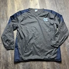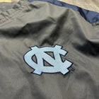 This is a men's medium gray North Carolina Tar Heels jacket, officially licensed by the NCAA. It is a windbreaker pullover designed for golf. The jacket features blue accents and is suitable for fans of the UNC team.