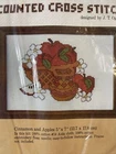 Caron Counted Cross Stitch Kit. Apples & Cinnamon in Basket 5”x7” No Frame. There is a hole in the plastic in the front of package-see pictures- no harm to the item inside noted.