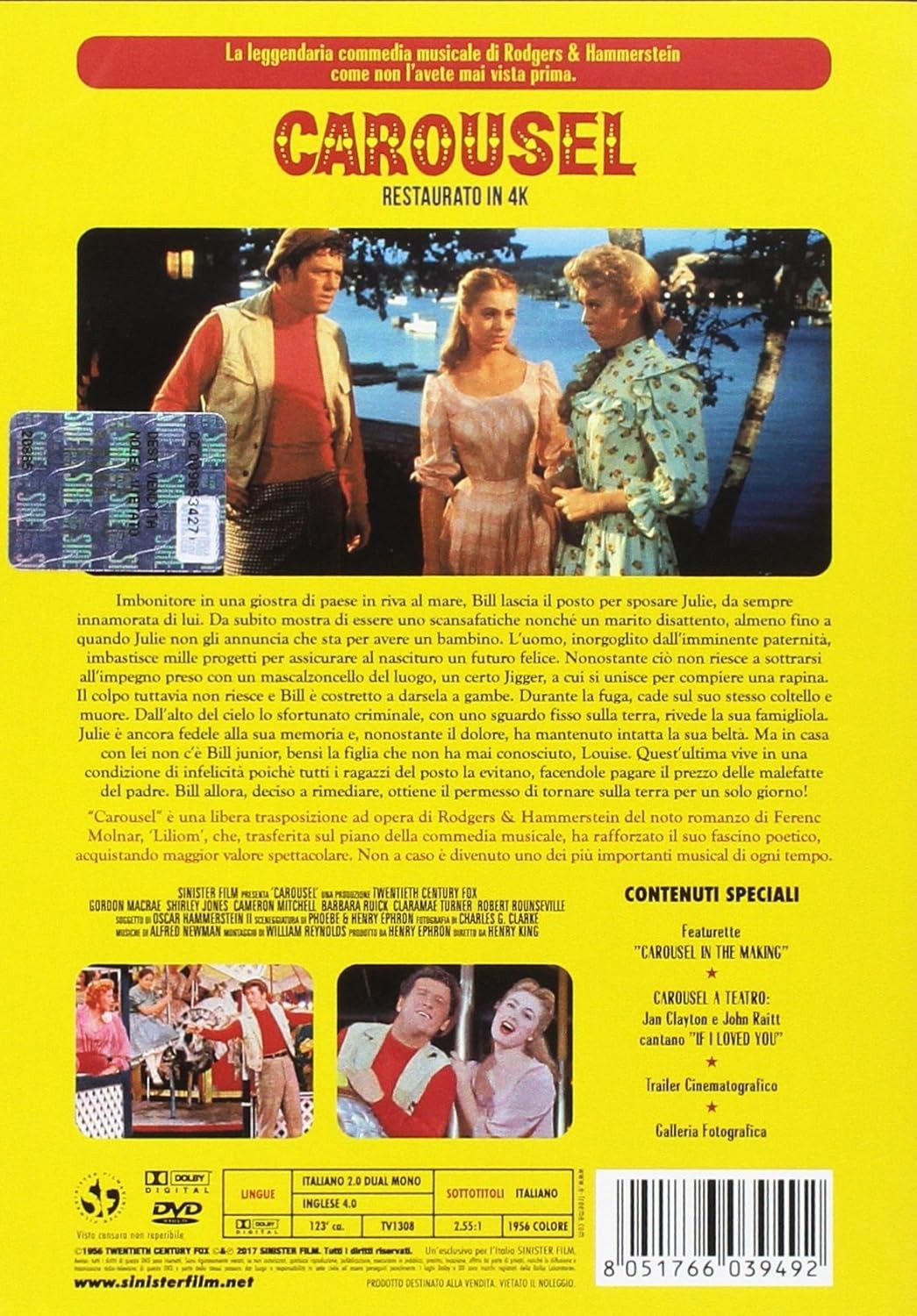 Further Details Title: Carousel Format: 4K UHD Blu-ray Condition: New Number Of Discs: 1 Actors: Cameron Mitchell, Gordon Macrae, Shirley Jones Audio Language: Italian (Dolby Digital 2.0) Runtime: 2 ore e 8 minuti Studio: Sinister Film Subtitle Language: Italian Certificate: Film per tutti DVDs ARE REGION 1 UNLESS OTHERWISE STATED Missing Information? Please contact us if any details are missing and where possible we will add the information to our listing.