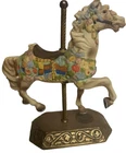This limited edition Carousel Memories Americana Collection figurine by Willitts features a beautiful horse design. Crafted from porcelain and brass, this medium-sized figurine measures 7.5 inches in height and 6 inches in width, making it perfect for display in any room. The matte finish adds to its charm, and the multicolor horse pattern is sure to delight anyone who loves horses or cottagecore style. Signed by the artist, this figurine is a unique addition to any collection. Whether you're a fan of carnivals, circuses, or just love horses, this figurine is a great reminder of childhood memories and the joy of life. Excellent condition