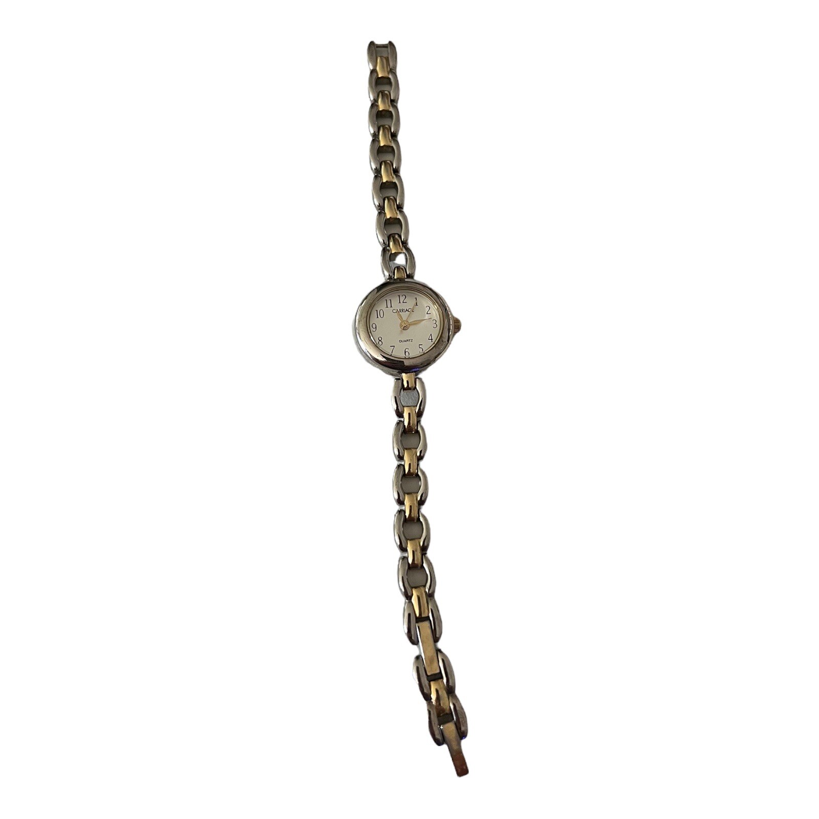 Carriage Timex Watch Women Silver Gold Two Tone - New Battery 7.25". Item will ship via USPS Ground Advantage Mail. Some minor wear to the watch - see photos