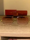 Cartier C Decor sunglasses in a luxurious gold frame with stunning pink lenses. This unisex design exudes sophistication and style, making it a must-have accessory for any fashion-forward individual. Brand new and comes with accessories and a dust protector to ensure your sunglasses stay in pristine condition. Elevate your look with these iconic Cartier sunglasses.