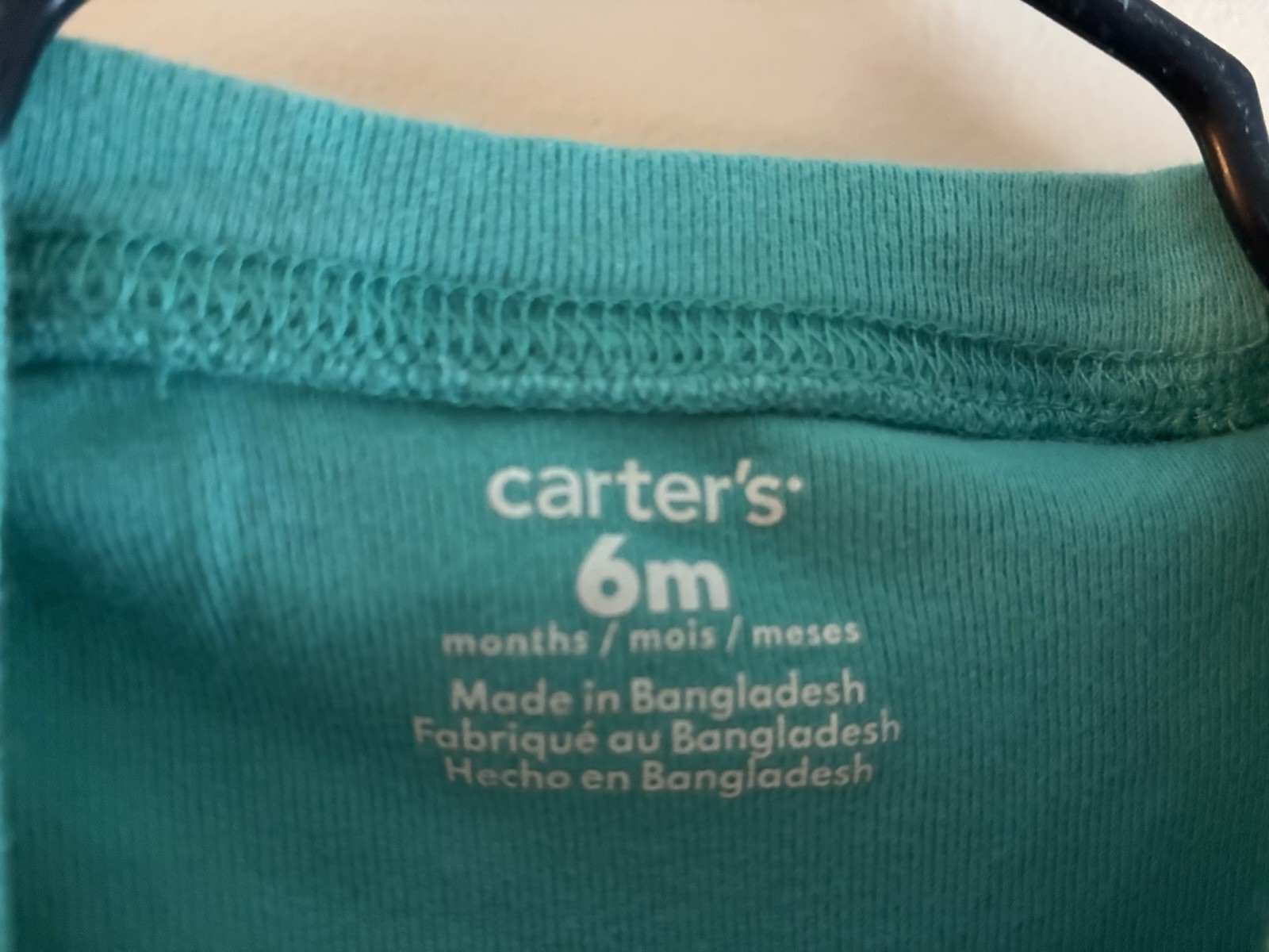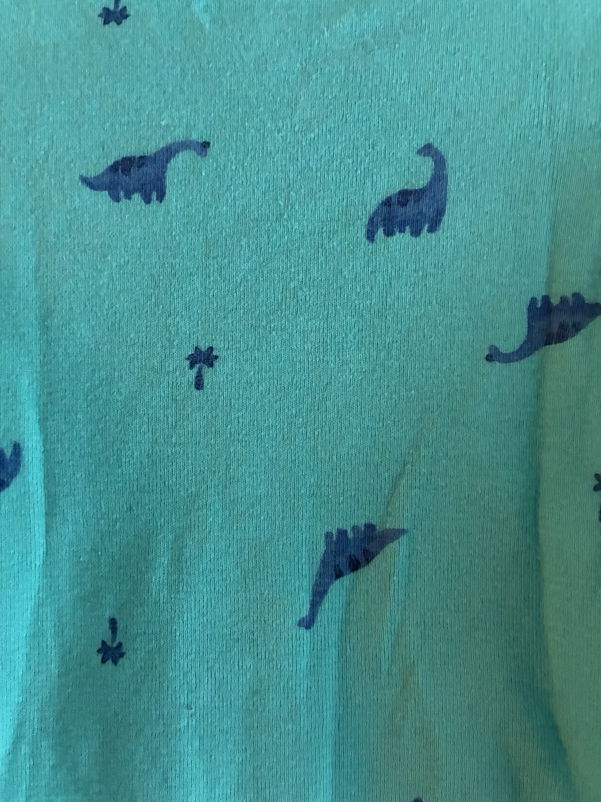 Department: Boys Season: Fall, Spring, Summer Material: 100% Cotton Style: Bodysuit Type: One-Piece Neckline: Crew Neck Set Includes: Bodysuit Number of Pieces: 1 Piece Brand: Carter's Occasion: Casual Features: Comfort, Easy Care, Lightweight, Stretch Sleeve Length: Short Sleeve Size: 6 Months Garment Care: Machine Washable Seller Notes: “In very good condition. Free of rips or stains.” Color: Dark Aqua Country of Origin: Bangladesh Theme: Dinosaurs Closure: Snap Pattern: Animal Print