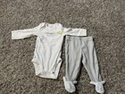 Carter’s baby outfit set in size 3 months, originally purchased specifically for Easter and worn one time only. This adorable neutral set features a long-sleeve ivory bodysuit with sweet bunny and chick graphics, paired with gray and white striped pants with attached bunny face footies and soft 3D ears, making it perfect for Easter photos, spring celebrations, or gifting. Made from soft, comfortable cotton with lap shoulders and snap closure for easy changes, and a gentle elastic waistband on the pants. Used once for Easter, then stored, this set is in excellent condition with no stains, holes, or wear. Ships fast — usually within 24 hours.