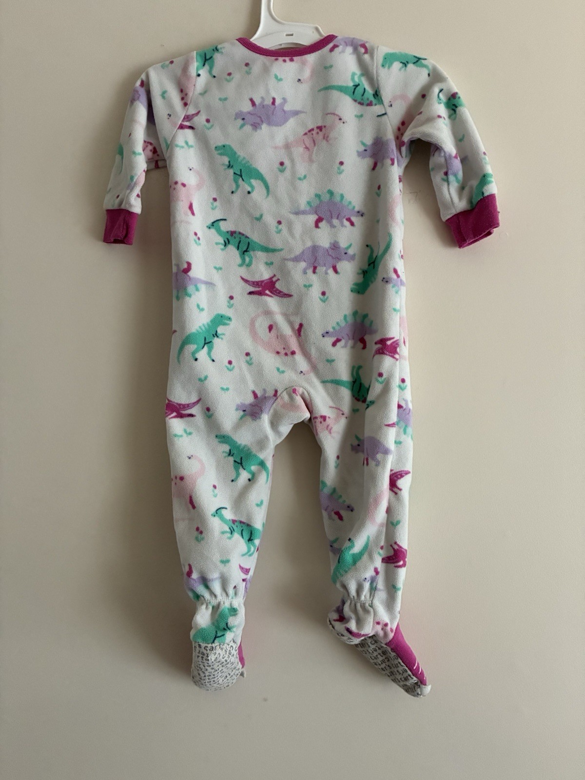 Carters Baby Girl 1-Piece Cozy Fleece Cute Dinosaurs Fleece Zip-Up PJs White 12M. Condition is pre-owned. Smoke free, pet free home. Shipped via USPS Ground Advantage. In very good condition. Free of rips or stains.