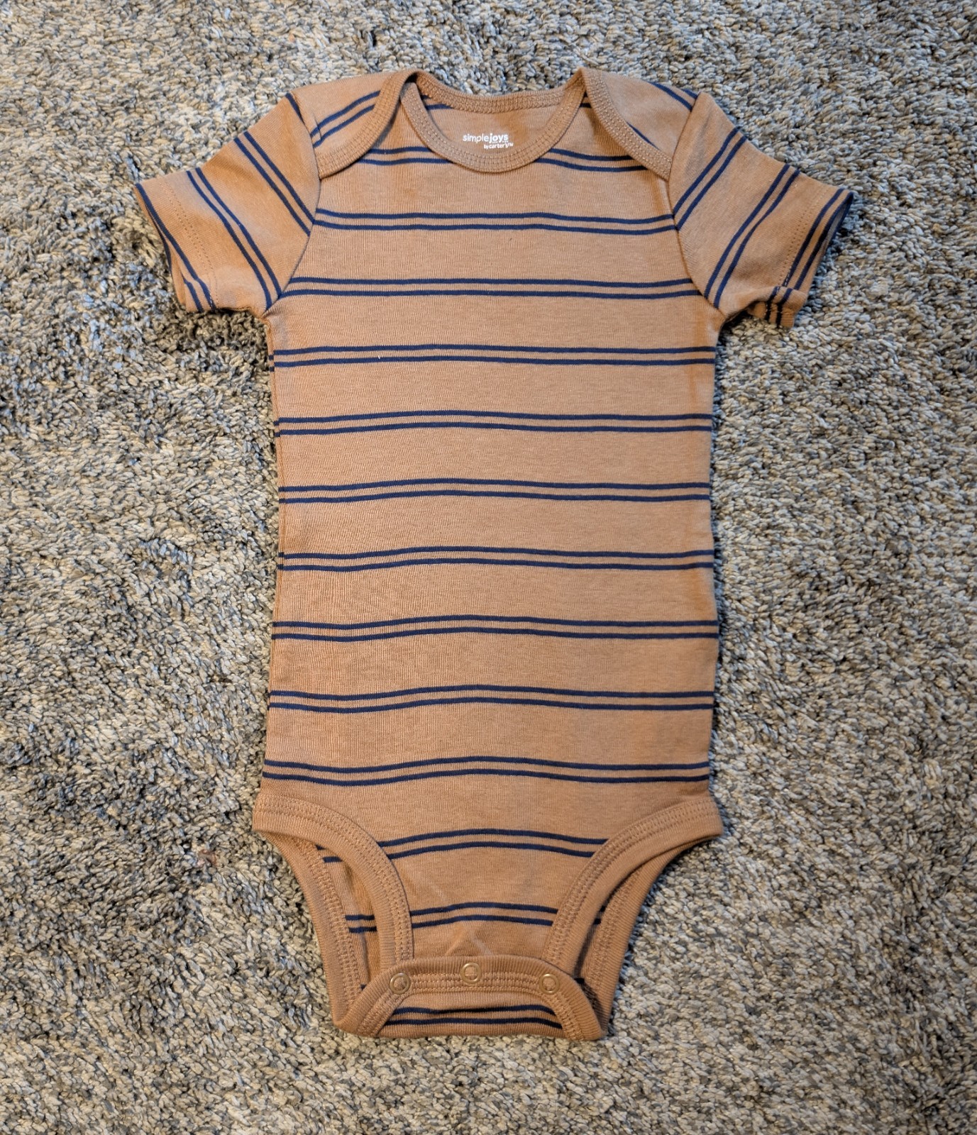 This 4-pack of Carter Based (Carter's, Just One You & Simple Joys) Striped Baby clothes include two 12M Onesies, one Foxy Striped one-piece, and one 12M Striped Onesie. All clothes are washed with wrinkles and NO STAINS.
