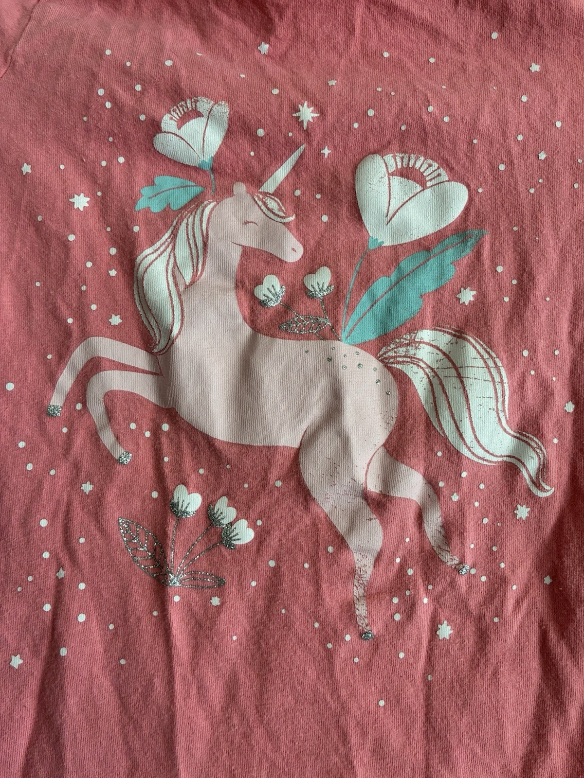 Carter's Kid Girls Glitter Floral Unicorn 100% Cotton Crewneck T-Shirt Pink 7/7A. Condition is pre-owned. Smoke free, pet free home. Shipped via USPS Ground Advantage. In good condition. Part of the unicorn graphic is worn off. Free of rips or stains.