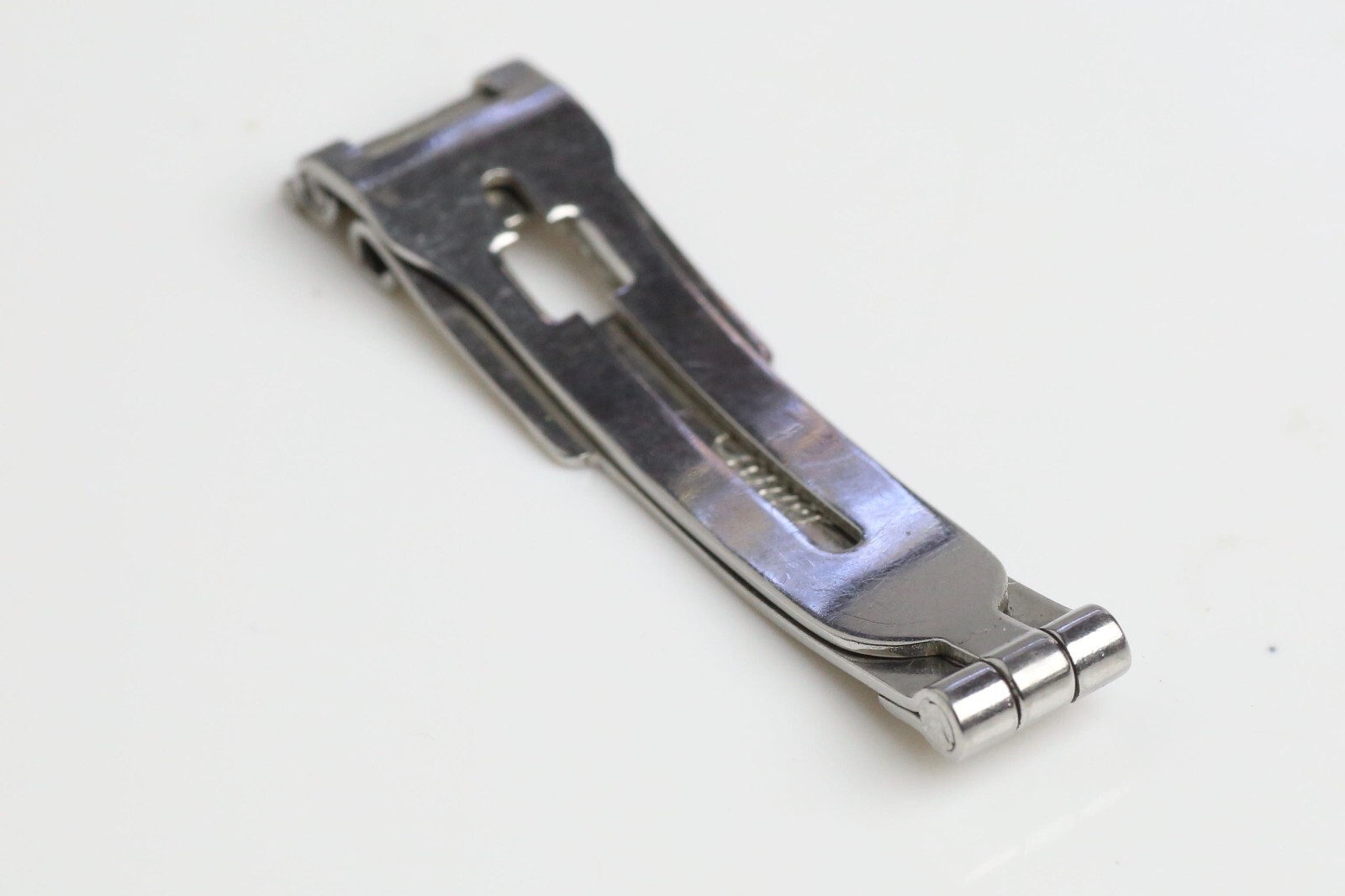 Cartier Stainless Steel Folding Deployment Clasp 10.1mm Genuine Cartier single-folding deployment clasp . Stainless steel construction. Fits straps with 10.1mm width at clasp end. Please check the photos and description carefully to make sure this clasp is correct for your Cartier model . In very good used condition. See high resolution photos for detail and condition. All items sent with a tracked service within 1 working day. I ship to your selected eBay address so please ensure this is up to date before payment. Import duties, taxes, and charges are not included in the item price or shipping cost unless collected automatically by eBay. These charges are the buyer's responsibility. Please check with your country's custom office to determine what these additional costs will be prior to bidding or buying. Occasional shipping delays may occur. Such delays with the courier or customs are out of my control. Please remain patient. See my other items for sale Bid with confidence! I have positive feedback from over 1000 buyers spanning 20+ years, buying and selling Swiss watches, collectibles, jewellery and antiques. I have sold leading brands including Rolex, Franck Muller, JLC, Cvstos, IWC, Cartier, Chopard, Panerai, Zenith, Omega, Breitling, Girard Perregaux, Ulysse Nardin, Bell & Ross, Corum, Ebel, Longines, Maurice Lacroix and more. International buyers welcome! I have sold all around the world including Europe, Asia, Middle East, North America, South America and Australia. Add me to your favourite sellers list as I am always adding new and interesting items.
