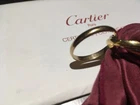 This stunning Cartier tri-color rolling ring is pure elegance! The interlocking 18K yellow, white, and rose gold bands create a luxurious yet timeless look. The perfect fit for size 6, it’s in excellent pre-owned condition with all authenticity markings. A true statement piece that effortlessly elevates any outfit—classic Cartier craftsmanship at its finest!