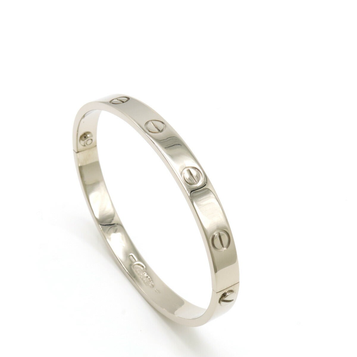 - General information - Brand : CartierItem name : Cartier 18K White Gold LOVE Bracelet Size 17 B6005600Model number : B6005600 - Design -Type : BangleMaterial : MetalColor : SilverGender : Female- Size -Size : Size : 17Main Material : 750 WG- Inventory -Serial Number : SKU : 120240007668000A0025568950- Included Items -Accessories : null*Before purchasing, please refer to the images of the accessories included with the item.- Condition -Condition : Pristine ConditionRank : Used A Unused. Storefront display.Condition Notice : Before purchasing, please refer to the images for the exact condition of the item. Tribute to Style Our eBay Store About Us Contact Us Add to favourite sellers Cartier 18K White Gold LOVE Bracelet Size 17 B6005600 - General information - Brand : CartierItem name : Cartier 18K White Gold LOVE Bracelet Size 17 B6005600Model number : B6005600 - Design -Type : BangleMaterial : MetalColor : SilverGender : Female- Size -Size : Size : 17Main Material : 750 WG- Inventory -Serial Number : SKU : 120240007668000A0025568950- Included Items -Accessories : null*Before purchasing, please refer to the images of the accessories included with the item.- Condition -Condition : Pristine ConditionRank : Used A Unused. Storefront display.Condition Notice : Before purchasing, please refer to the images for the exact condition of the item. Product Details UPC 2783305767936 HEIGHT WIDTH LENGTH