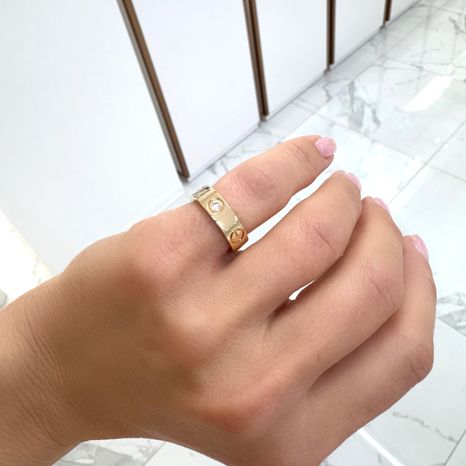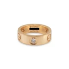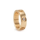 Brand: Cartier Gender: Ladies Metal Type: 18K Yellow Gold Ring Size: 4.5 Width: 5.20 mm Weight: 7.39 grams One ladies 18K yellow gold diamond band with a soft-square shank. The metal was tested and determined to be 18K yellow gold. Engraved with "48" and "750". The "Cartier" trademark (or hallmark) can also be found on the item. The Cartier ring size is 48. Comes with original Cartier pouch. Pre-owned In excellent condition. Might show minor signs of wear. Bezel Set in 18 Karat Yellow Gold with: Three (3) round brilliant cut natural diamonds: Measurements: 2.65mm - 2.70mm in diameter x ~1.63mm in depth. Weight Range: 0.066 ct. - 0.070 ct. Estimated Total Weight: 0.200 ct. Color: F - G Clarity: VS1 - VS2 Cut: Very Good Polish: Very Good Symmetry: Very Good TOTAL WEIGHTS: Total weight of diamond(s): ~0.20 ctw. SKU: 203327