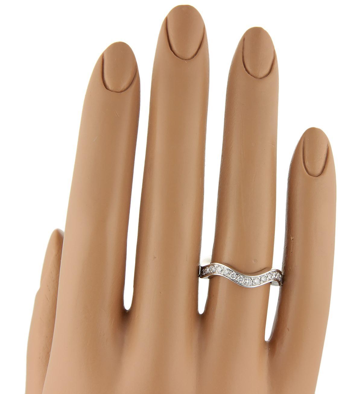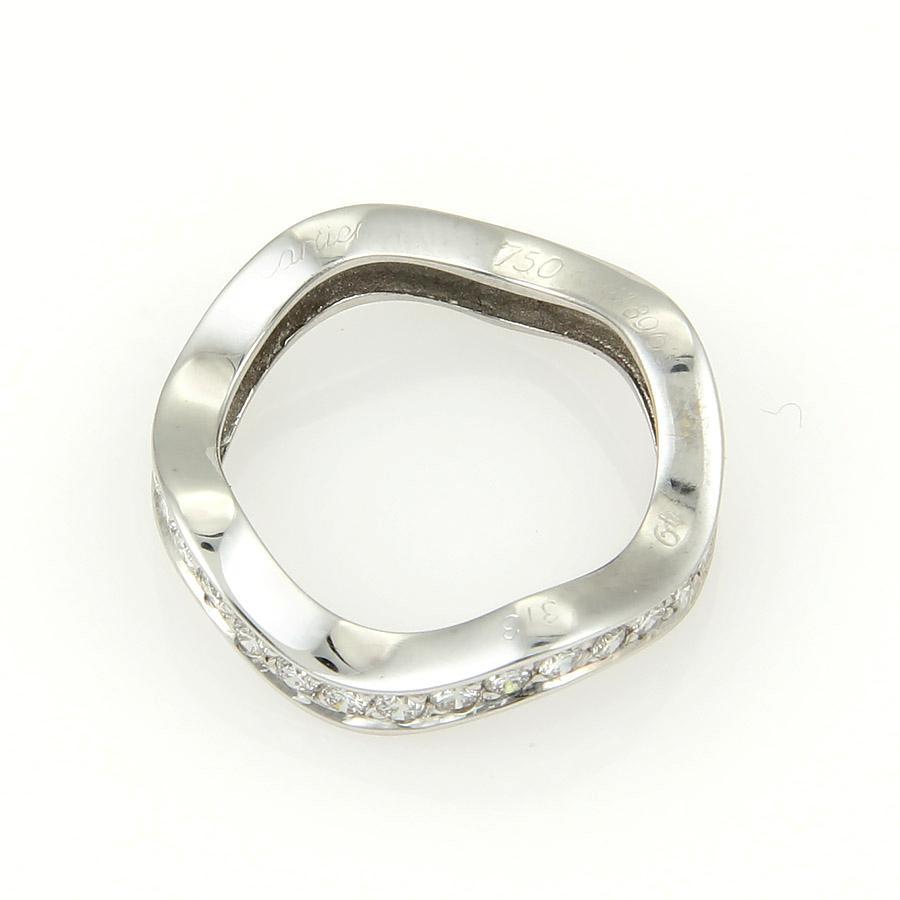 Cartier 18k White Gold Diamond Eternity Wave Band Ring Size EU 49-US 4.75 This gorgeous diamond and white gold ring is from the house of Cartier, it is crafted from 18k white gold in a fine polished finish. The ring is in a wave design with the front half adorned with round cut sparkling diamonds. Ideal for creating some sparkle into your look. It bares Cartier signature, serial number and metal content. Add it now to your jewlery collection. Also a great gift idea! Cartier looks beyond the fleeting fashions of the day, forging a style out of its extraordinary history, travels and encounters with exceptional personalities are depicted in all their designs. Buy with confidence! We are second generation jewelers. We test and appraise out item very carefully. Material: 18k white gold Hallmark :Cartier 750 49 818963 Measurements: Band: 3 mm Wide Diamonds: 0.40 total carat weight Color : F Clarity: VS1 Ring Size: US: 4.75 European: 49 Weight: 3.8 grams Stock#: 27585 International Buyers - Please Note: Import duties, taxes, and charges are not included in the item price or shipping cost. These charges are the buyer's responsibility. Please check with your country's customs office to determine what these additional costs will be prior to bidding or buying. We will not under-value merchandise or mark the item as a gift on custom forms. Doing so is against United States and International laws.