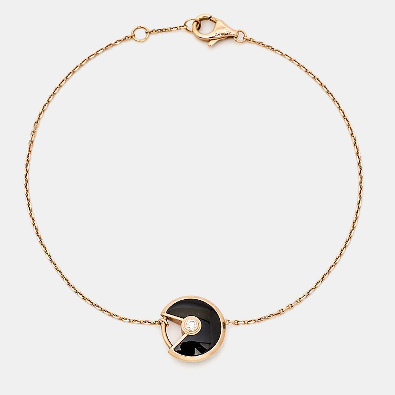 A magnificent offering from Cartiers Amulette de Cartier line. The bracelet comes sculpted from 18k rose gold and it has the signature motif as the charm inlaid with onyx highlighted by a shimmering diamond. Smoothly finished, the desirable creation deserves to be on your wrist.Certified by The Luxury Closet - This item has gone through a detailed authentication process overseen by our experts. We offer a lifetime guarantee of authenticity on all our items. Import duties, taxes and charges are not included in the item price. These charges are the buyers responsibility. Please check with your country’s customs office to determine what these additional cost will be prior to buying. Our eBay Store About Us Contact Us Add to Favorite Sellers Cartier Amulette De Cartier Onyx Diamond 18k Rose Gold XS Model Bracelet $2060.3 A magnificent offering from Cartiers Amulette de Cartier line. The bracelet comes sculpted from 18k rose gold and it has the signature motif as the charm inlaid with onyx highlighted by a shimmering diamond. Smoothly finished, the desirable creation deserves to be on your wrist. Product Details Brand Color Gold Dimensions Material 18k Rose Gold Size XS Outsole Width Outsole Length Heel Height Includes Certified by The Luxury Closet This item has gone through a detailed authentication process overseen by our experts. We offer a lifetime guarantee of authenticity on all our items. How We Check The in-house team of experts at The Luxury Closet is highly trained to verify the authenticity and the condition of the luxury products. They ensure that only 100% authentic items are put on sale.The evaluation process is unique with its own mix of assessment criteria and differs according to the category. Each item is evaluated based on the following combination of hallmarks, hardware, stitching, symmetry, material, craftsmanship, stamping, codes, hologram stickers, and packaging. Our authenticators also check if the items have been modified or amended (e.g., aftermarket diamonds, replaced batteries, repaired bags, etc.) International Buyers Import duties, taxes and charges are not included in the item price. These charges are the buyers responsibility. Please check with your country’s customs office to determine what these additional cost will be prior to buying.