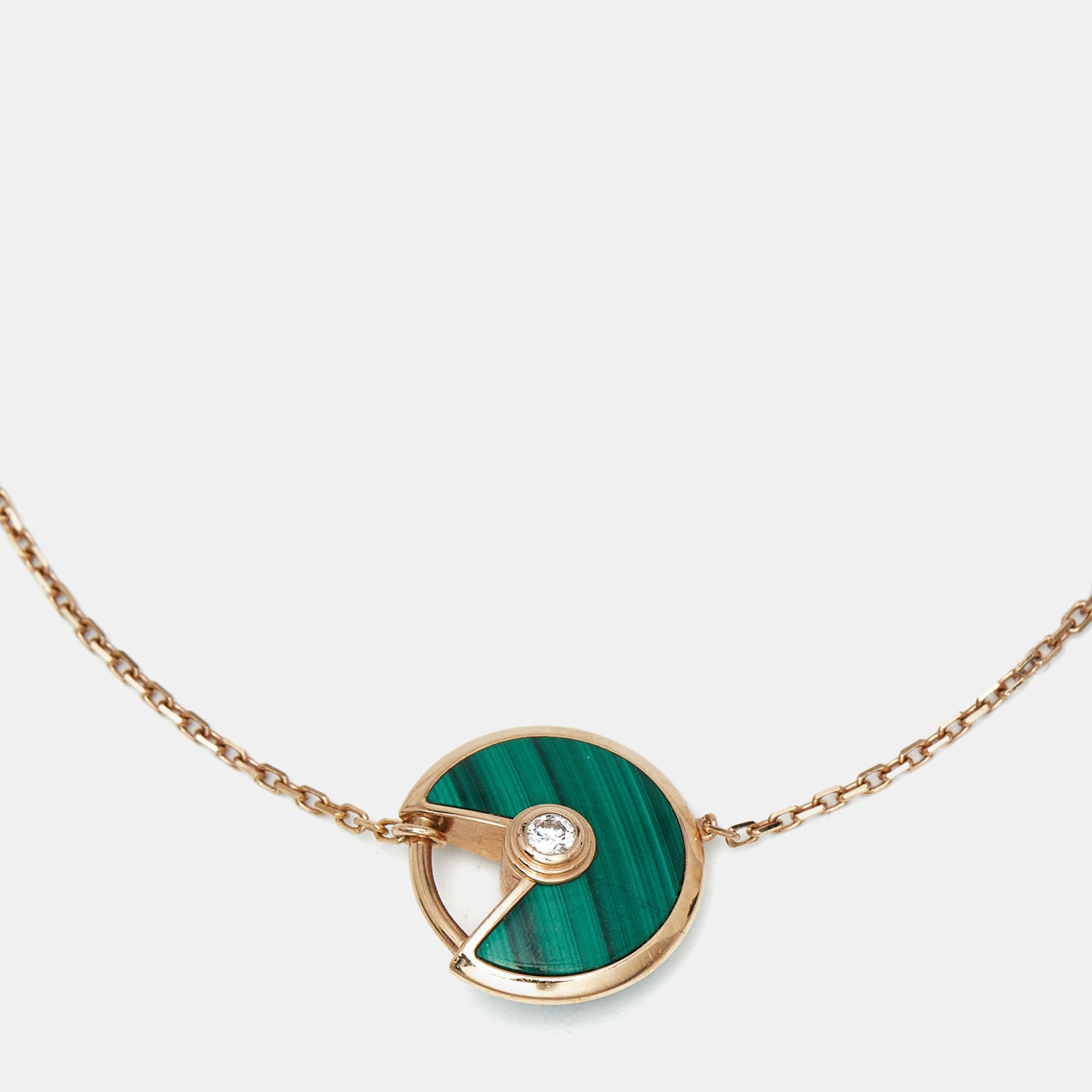 A charm of protection and elegance, the Amulette de Cartier bracelet features a deep green malachite disc accented with a single diamond. Crafted in 18k rose gold, this XS model is delicate yet striking.Certified by The Luxury Closet - This item has gone through a detailed authentication process overseen by our experts. We offer a lifetime guarantee of authenticity on all our items. Import duties, taxes and charges are not included in the item price. These charges are the buyers responsibility. Please check with your country’s customs office to determine what these additional cost will be prior to buying. Our eBay Store About Us Contact Us Add to Favorite Sellers Cartier Amulette De Cartier Malachite Diamond 18k Rose Gold XS Model Bracelet $1978.9 A charm of protection and elegance, the Amulette de Cartier bracelet features a deep green malachite disc accented with a single diamond. Crafted in 18k rose gold, this XS model is delicate yet striking. Product Details Brand Color Gold Dimensions Material 18k Rose Gold Size XS Outsole Width Outsole Length Heel Height Includes Certified by The Luxury Closet This item has gone through a detailed authentication process overseen by our experts. We offer a lifetime guarantee of authenticity on all our items. How We Check The in-house team of experts at The Luxury Closet is highly trained to verify the authenticity and the condition of the luxury products. They ensure that only 100% authentic items are put on sale.The evaluation process is unique with its own mix of assessment criteria and differs according to the category. Each item is evaluated based on the following combination of hallmarks, hardware, stitching, symmetry, material, craftsmanship, stamping, codes, hologram stickers, and packaging. Our authenticators also check if the items have been modified or amended (e.g., aftermarket diamonds, replaced batteries, repaired bags, etc.) International Buyers Import duties, taxes and charges are not included in the item price. These charges are the buyers responsibility. Please check with your country’s customs office to determine what these additional cost will be prior to buying.