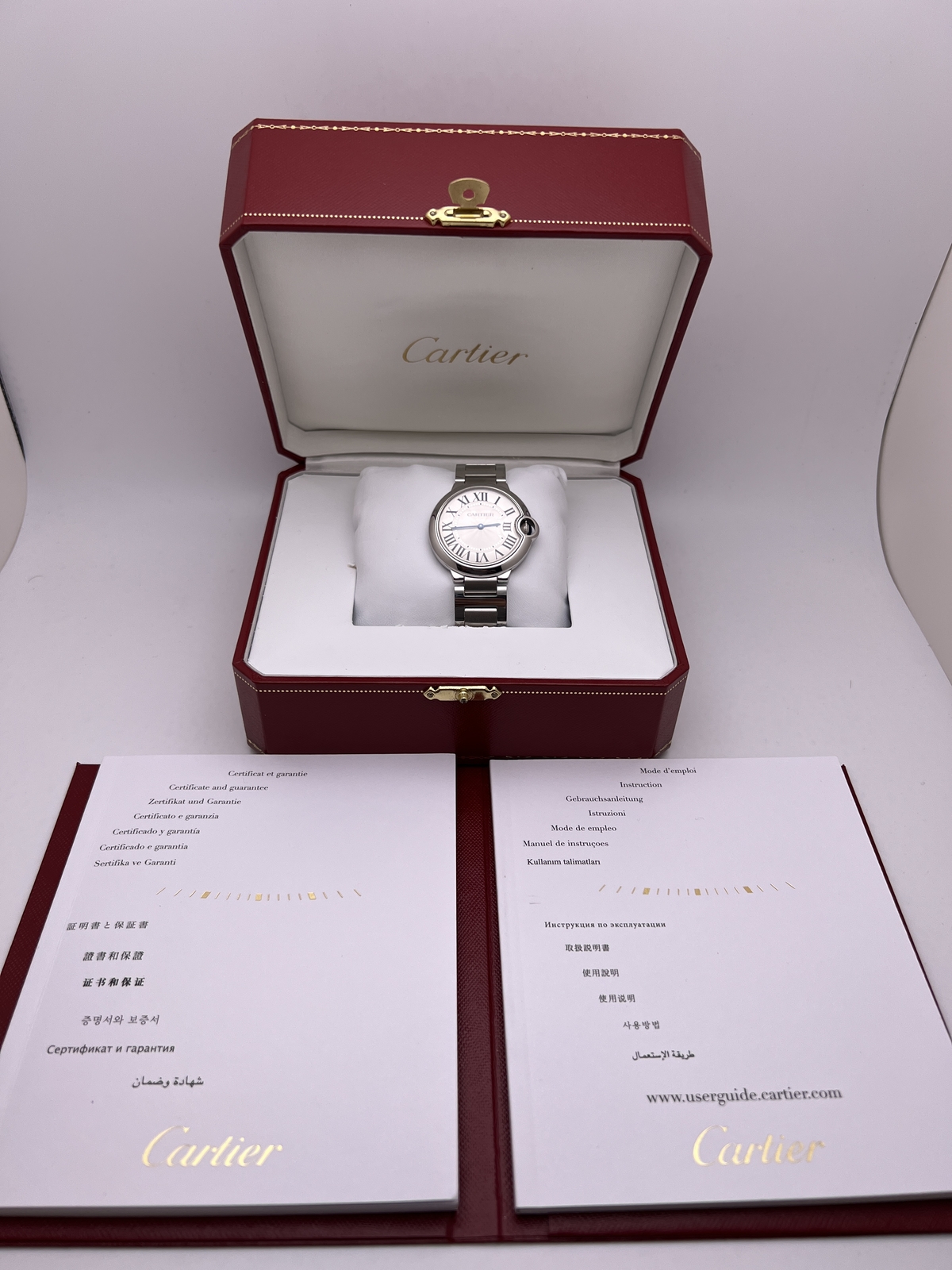 Excellent condition Cartier Ballon Bleu 36mm Quartz model W69011Z4 Stainless Steel. Silver guilloché dial, with blue steel hands and blue cabochon set on the crown. Watch is serviced and polished to look as new prior to ship. Complete with Box and Papers, with 1 year seller warranty. Cartier Ballon Bleu 36mm W69011Z4 Silver Dial Steel Quartz Watch Box & Papers Description Excellent condition Cartier Ballon Bleu 36mm Quartz model W69011Z4 Stainless Steel. Silver guilloché dial, with blue steel hands and blue cabochon set on the crown. Watch is serviced and polished to look as new prior to ship. Complete with Box and Papers, with 1 year seller warranty. Ships from Address 608 5th Ave, STE 406 - New York NY, 10020 Phone 16466697750 Condition Pre Owned Highlights Case Size 36 mm Wrist Fit 7 inch Box Yes Papers Yes SKU 000261 General Info MSRP 6250 Brand Cartier Type Wristwatch Department Unisex Adult Model Number W69011Z4 Country/Region of Manufacture Switzerland Style Luxury Model Cartier Ballon Bleu Features/Other Details Customized No With Original Packaging Yes With Booklet Yes With Papers Yes Seller Warranty Yes SKU 000261 Features Fixed Bezel, Push/Pull Crown, Sapphire Crystal, Scratch-Resistant, Shock-Resistant, Splash Proof, Swiss Made, Swiss Movement, Water-Resistant Band/Bracelet Details Band Color Gray, Silver Band Material Stainless Steel Closure Double-Locking Fold-Over Clasp Band Type Bracelet Band Width 18 mm Lug Width 19 mm Wrist Fit 7 inch Case Details Case Material Stainless Steel Case Color Silver Water Resistance 30 m (3 ATM) Watch Shape Round Caseback Screwback Case Finish Polished Case Size 36 mm Case Thickness 12 mm Bezel Details Bezel Type Fixed, Smooth Bezel Color Silver Display Dial Color Silver Display Analog Indices 12-Hour Dial, Roman Numerals Movement Movement Quartz Shipping Warranty Return Policy FAQ We take all steps to make shipping as seamless and secure for both us as the seller and you as the buyer. We ship all items via Federal Express, all items require signature on delivery to confirm receipt of the package. Furthermore, most higher priced watches sold on eBay go through the authentication program where we ship the watch to eBay and they then send it along to you after passing their authentication and certification process. This ensures that you are receiving exactly what you bought as described for a worry free transaction process. Unless otherwise stated most new items carry the manufacturer warranty from the date of the original sale. This tends to be more often than not within one year of the date sold by us on eBay. If no warranty is implicitly described we warranty against any defects in mechanical workmanship for up to one year from purchase. Accidental damage, wear and tear, third-party modification or service and/or improper use are not covered and will void the warranty, repairs can still be performed at a cost. Pre-owned watches will list what manufacturer warranty, if any, applies. If not listed they will default to our 1 year from date of purchase warranty. Warranty covers labor only, parts, if any required, are subject to a charge at cost. Warranty repairs are subject to shipping charges, local drop off and pickup is available. Even outside of a warranty period we can always provide top quality service and very competitive pricing for service, repair and/or refinishing by our Watchmakers trained and specialized in Swiss Mechanical Watches. Most items have a worry free 14 day return policy. All items are photographed and described accurately and shipped in the condition described. Any signs of wear will void any return privileges, the watch must be returned in the condition received, in working order and free from signs of use and wear. The packaging process is under constant video surveillance and securely sealed in its packaging box. Should you need to return the item please reach out to us first so we may assist you in that process if there is anything that is needed as well as to guide you on the process to ship us back something securely. Q: How may we contact you? A: We are available through ebay messaging, phone or in office as well as on social media. Chrono On Fifth LLC 608 5th Ave STE 406 New York, NY 10020 tel 646 669 7750 IG: @ChronoOnFifth Q: Are all of the items listed original and authentic? A: Yes! All of our items are guaranteed authentic. Very few items may be customized (Bezels, Dials, Custom set diamonds etc) and they are clearly and accurately described as such. We only source from reputable sources in the industry and items pass through multiple layers of authentication. In the rare event some parts that are no longer produced and a repair is required these may be used but are 100% matches to OEM specificities. About Us Over 30 years in Jewelry and Watches business, located on the world renown Fifth Ave in the heart of Midtown Manhattan, Chrono On Fifth specializes in Selling and Buying luxury Swiss watch brands such as Rolex, Audemars Piguet, Patek Philippe, IWC, Hublot, Omega, Panerai, Chopard, Cartier, Bvlgari amongst many others. We are your one stop shop for Buying, Selling or Repairing your wristwatch. We source all of our watches from reputable sources worldwide to bring you the lowest prices and guaranteed authentic items. All watches are inspected upon receipt before we make them available for sale. Just a few steps away from Rockefeller Plaza and across from Saks Fifth Ave you can feel comfortable and safe shopping in our private office or through the phone or web. Please reach out anytime should you want to buy or sell or trade any timepiece as well as repair or service your watch if needed. Please schedule an appointment if you would like to come into the office in person and view an item in our private showroom. Call or message us about your trade in or any other questions you may have! Chrono On Fifth LLC 608 5th Ave STE 406 New York, NY 10020 tel 646 669 7750 IG: @ChronoOnFifth Chrono on Fifth LLC is 