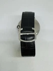 This Cartier Ballon Bleu watch features a custom diamond bezel and a silver dial with 12-hour indices. The watch is made of stainless steel and has an original new Cartier black leather band. It has a 42mm case size, sapphire crystal and a sapphire crown. The watch runs on a Swiss movement and has a mechanical (automatic) movement. The watch works okay (don’t know its service history). The main stones are natural round diamonds. The watch comes with a buckle closure and pneumatic center. The Ballon Bleu model is a classic design that is recognized all over the world. This watch does not come with original box/packaging, papers, or manual/booklet. It is a unique and customized piece that is sure to make a statement.