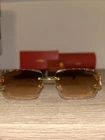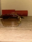Cartier C-decor sunglasses in a luxurious gold frame with brown glass lenses exude sophistication and style. This brand new pair comes complete with accessories and a dust protector, making it the perfect addition to any fashion-forward individual's collection. Elevate your look with these iconic Cartier sunglasses that combine elegance with modern design.
