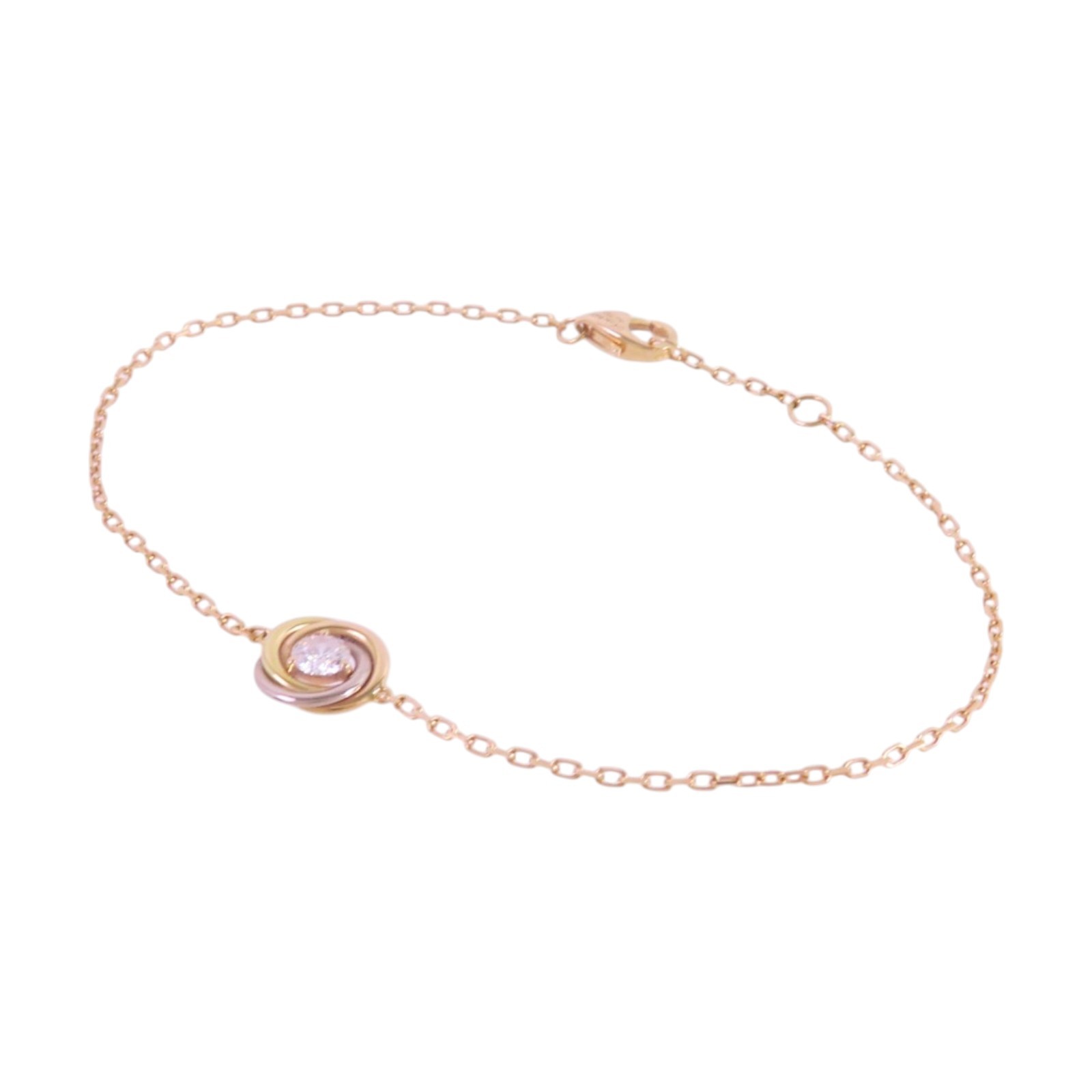 CARTIER Diamond Trinity Bracelet 18K Rose Gold 18K Yellow Gold 18K White Gold Description / Specification Brand Name CARTIER Item Name CARTIER Diamond Trinity Bracelet 18K Rose Gold 18K Yellow Gold 18K White Gold Color Clear×Gold×Silver Material K18PG(Rose Gold) × K18 (Yellow Gold) × 18KWG/Diamond Diamond Metal Purity K18PG(Rose Gold) × K18 (Yellow Gold) × 18KWG/Diamond Size Motif W:3-8mm x H:3-8mm(1.2" x 1.2") Accessories storage bags/Guarantee Wrist Size(Approx) W16.5-17.6cm(W6.5") Instore Code 2181100109065 Up Date 2025/07/19 Condition Pre-owned used Bracelet by CARTIER in good condition . Outside Condition There is some usability, scratches, rubbing, and stain. There are some signs of wear. *This product has been polished, but there may be small scratches that cannot be removed. Thank you for your understanding. Please take a look at the descriptions and the pictures above to check the condition of the item before the purchase. Rank Pristine New, Not used. Excellent Excellent, Allmost as good as new. Very Good A slightly used. Good There are a few scratches, stains and looks a little used. Fair + There are some noticeable scratches and stains. Looks used. Fair There are some noticeable scratches and stains. Looks obviously used. Poor + There are many scratches and stains. Looks very used. Poor Looks very used, but still usable. About Authenticity We have a large selection of luxury brand products We guarantee that all of the items we list and sell are authentic. Feel free to contact us if you have any inquiries or concerns. In addition, We also are a member of the Association Against Counterfeit Product Distribution (AACD), and we promise to have no bogus under any circumstances. Please read before order Shipment cannot be marked as a 'gift' or with altered price due to the custom declaration laws. Import duties, taxes, or other additional fees will be charged by your local customs. We are not responsible for any customs and taxes applied to your order. All fees imposed during or after shipping are the responsibilities of the customer (tariffs, taxes, etc.). Please inquire the details of import duties or taxes at the customs office in your country directly before making an order. Payment & Shipping Payment We only accept payments via Managed Payments. Shipping - Orders are shipped from Hong Kong - Orders will be dispatched within 3-5 business days - International shipment will be shipped via DHL Delivery time 1.Delivery usually takes approximately 3-10 business days. 2.Shipments might be delayed due to the following reasons: a)Bad weathers b)Public holidays c)Delay at the customs office Returns/Cancellation Policies As we are selling our items on other websites and in our retail stores at the same time, if the item was sold out before your purchase, your order will be cancelled with a full refund. Customers are allowed to return the item within 30 days from the delivery. Items without the security tag are not allowed to be returned. All fees imposed during the return shipping are the responsibilities of the customer Please contact us before starting a return Please provide us the tracking number if customer used your own courier method. See more Policies & Description